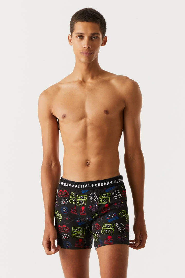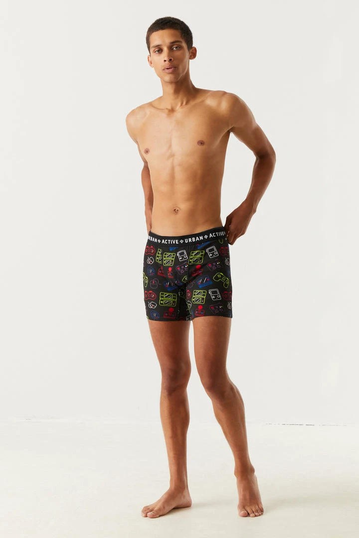 Who needs cheat codes?! Start any outfit out with this base and you’ll be high-scoring all day! This set features two elastic waist boxers, one with gamer print and one solid.