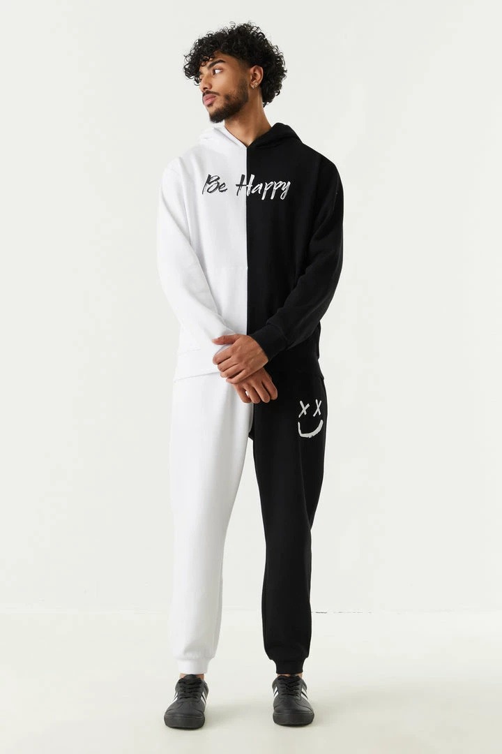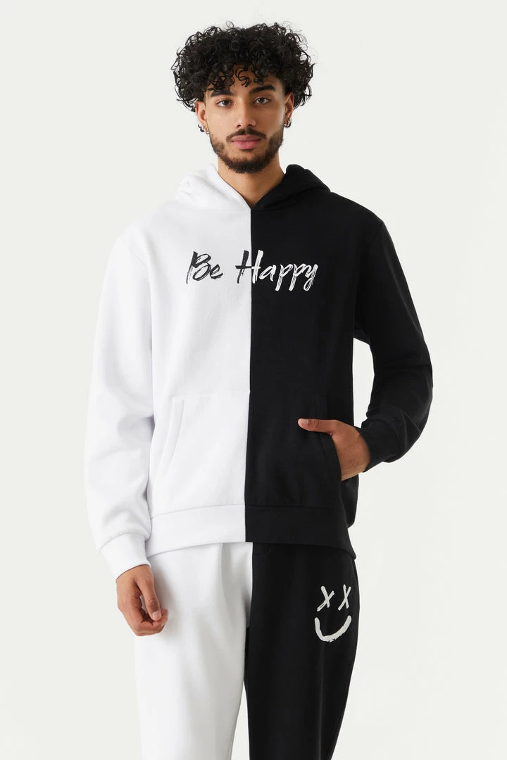 Happiness isn’t just about finding the perfect sweater set… but it’s a big part of it! This hoodie features long sleeves, split print, be happy front graphic, cross-eyed smiley face back graphic, ribbed knit hem, hood and kangaroo front pocket. Complete the look with the Be Happy Smiley Graphic Colour Block Joggers.