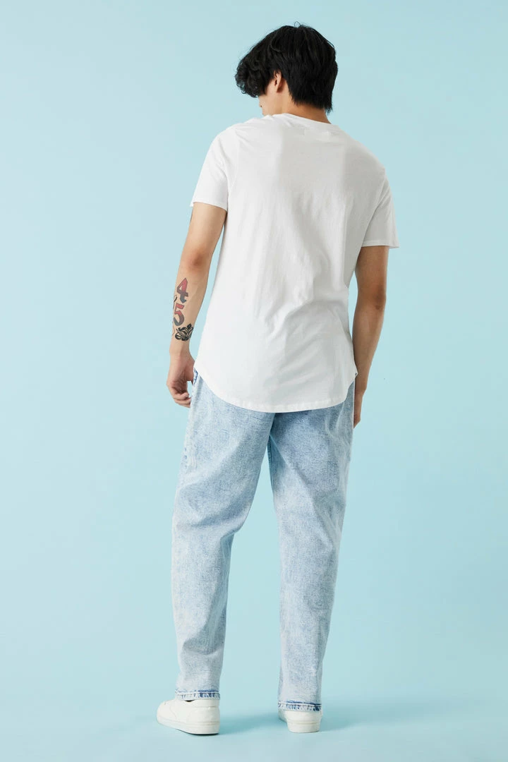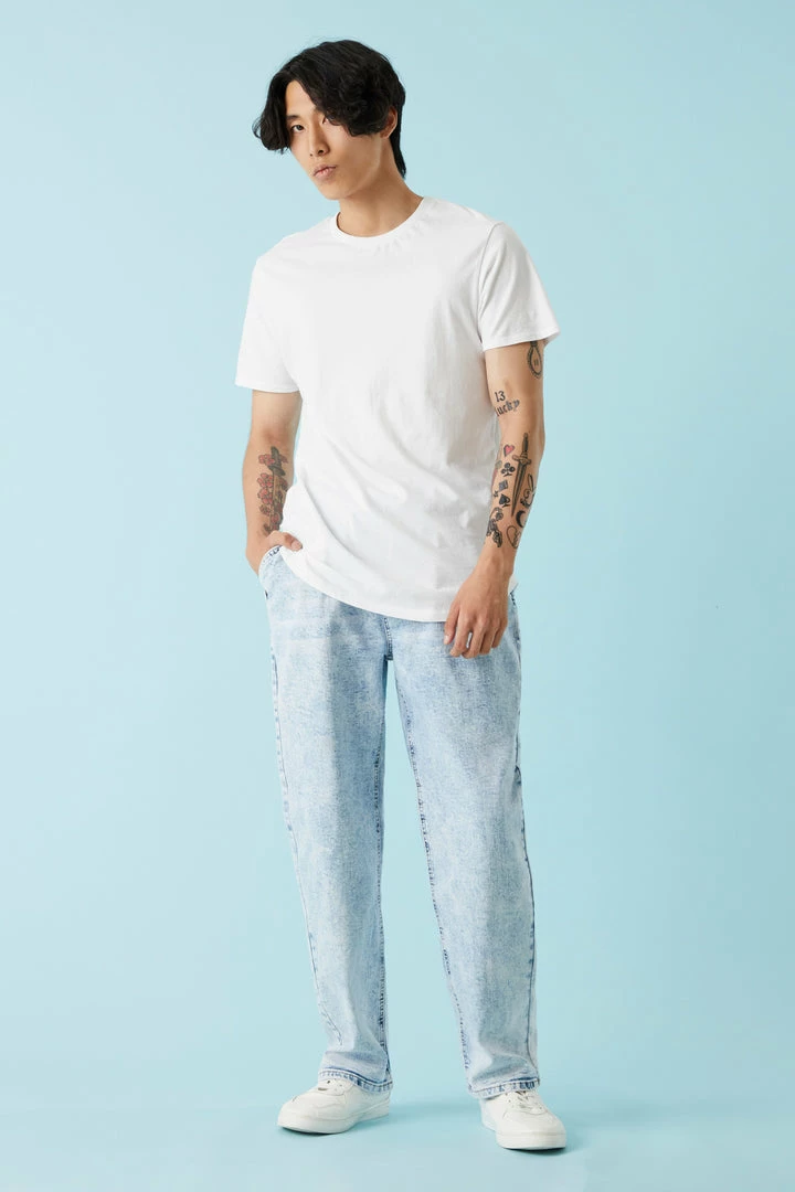 Give your jeans the day off! Slip into something more comfortable with these wide leg joggers. This jogger features black wash, loose leg, self-tie waist and four pockets.