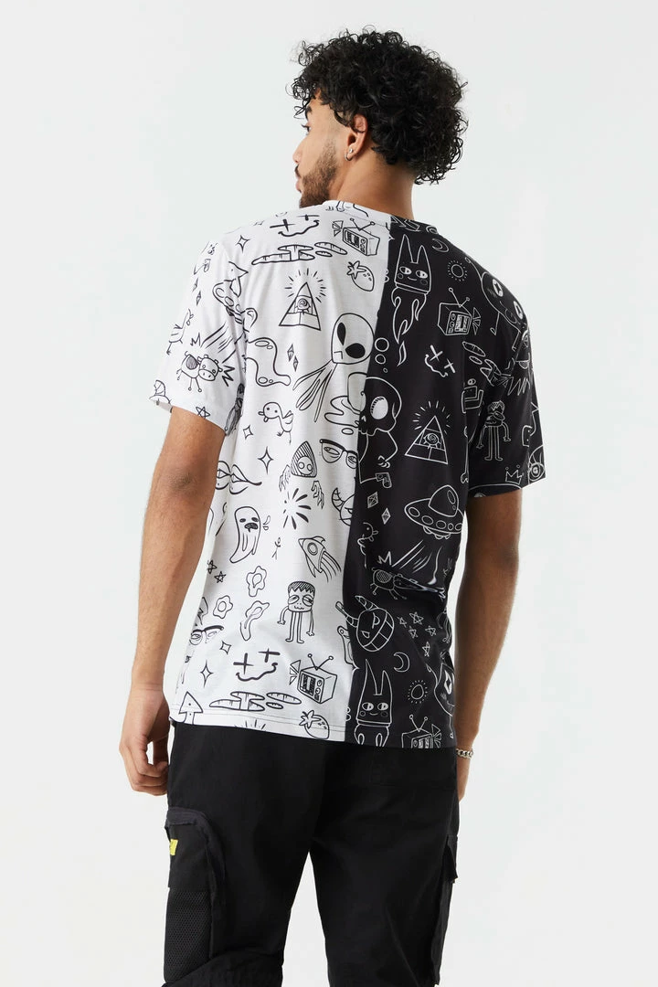 The world is a weird and wonderful place! Explore all the possibilities in this unbelievable tee. This t-shirt features crew neckline, short sleeves and conspiracy theory split graphic.