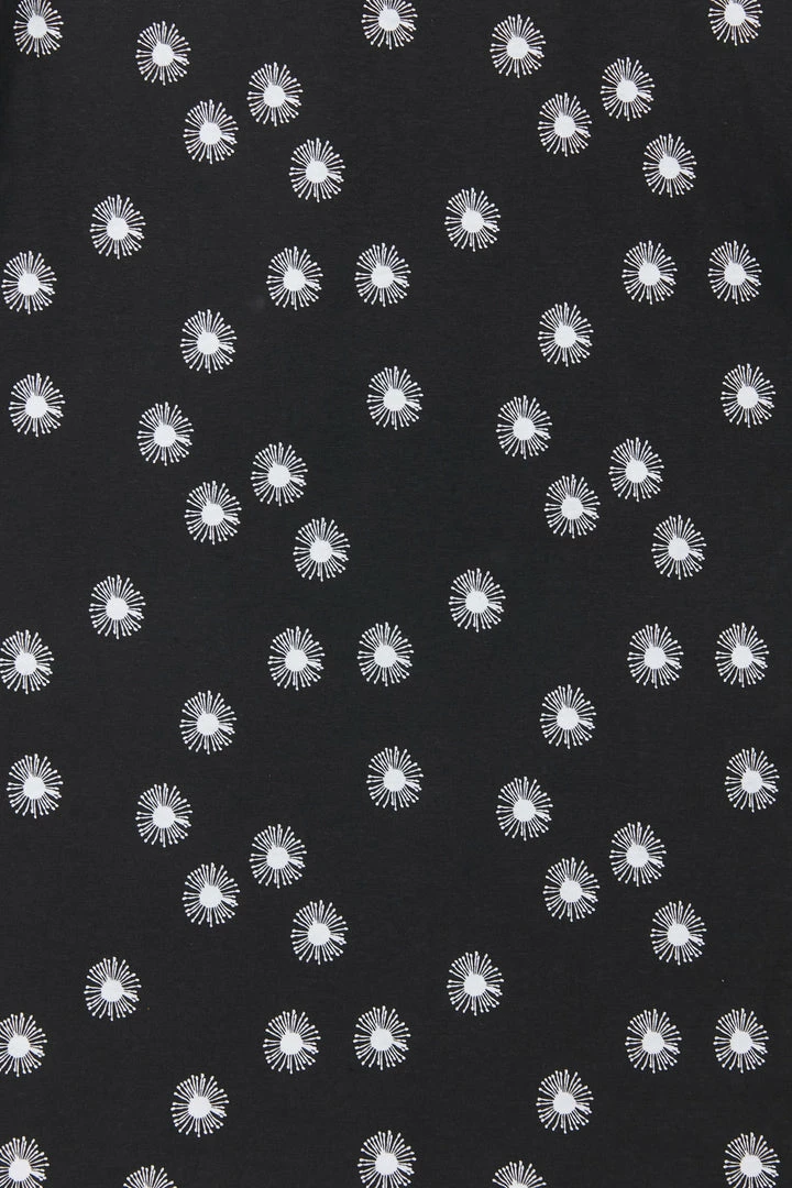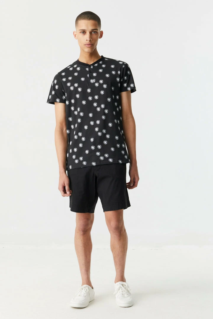 Put the petal to the metal and fly full speed in to summer with this fresh tee! This t-shirt features daisy print, henley neckline and short sleeves.