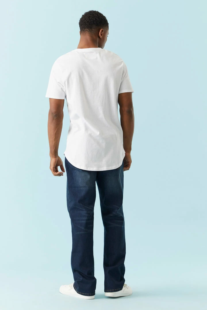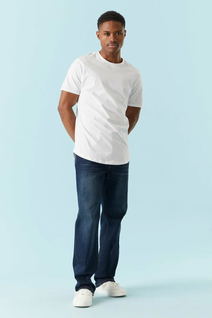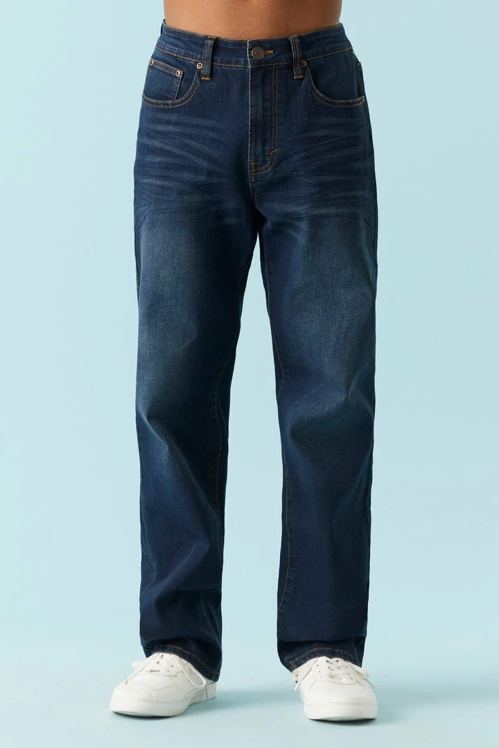 Take a step back and relax! Loosen up in these comfy fit jeans. This jean features zip-fly button-up closure, five pockets, relaxed fit, dark wash and belt loops.