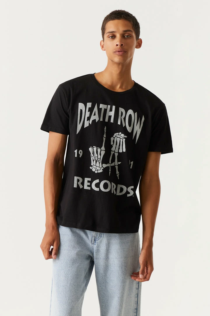 You know the name, and now you can rep the brand! Join the crew at death row records and prepare for the next big hit! This t-shirt features short sleeves, crew neckline and Death Row Records front graphic.