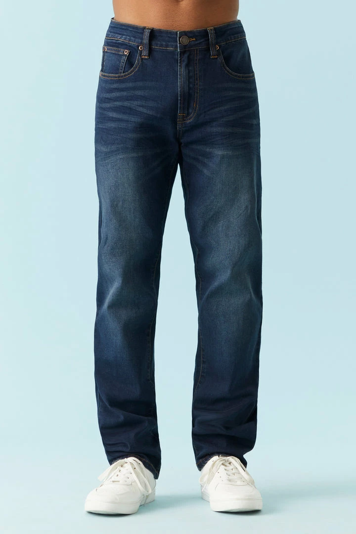 From the work week and into the weekend, these jeans will be there for you through it all! This jean features zip-fly button-up closure, distressing, five pockets, slim fit, dark wash and belt loops.