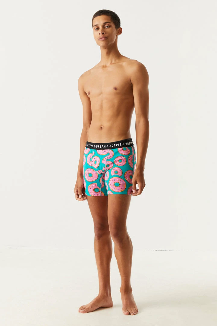 You donut want to miss out in this sweet set! This set features two elastic waist boxers, one with donut print and one solid.