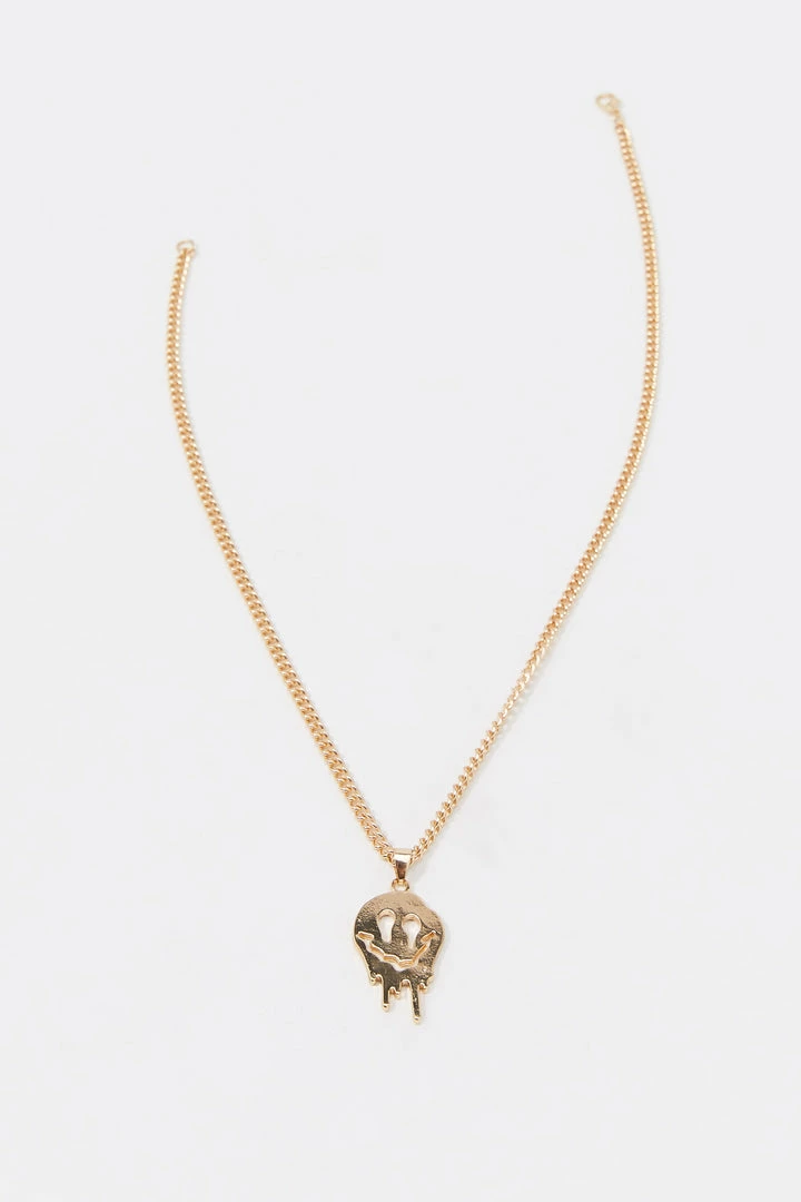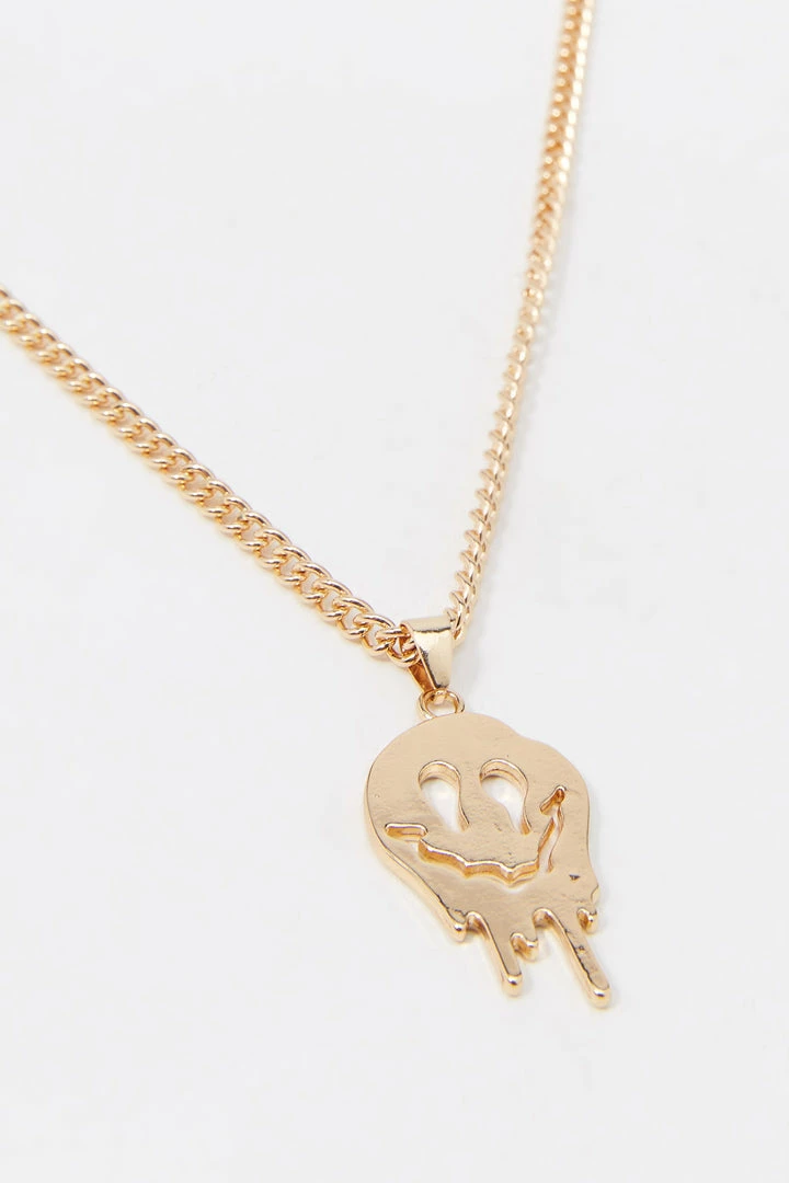 The icing is always the best part! Sweeten up your accessory collection with this smiley treat. This necklace features chain, dripping smiley pendant and lobster clasp closure.