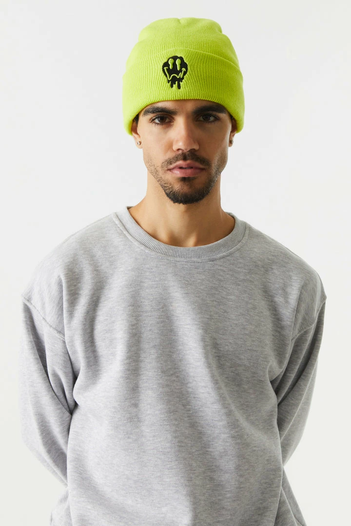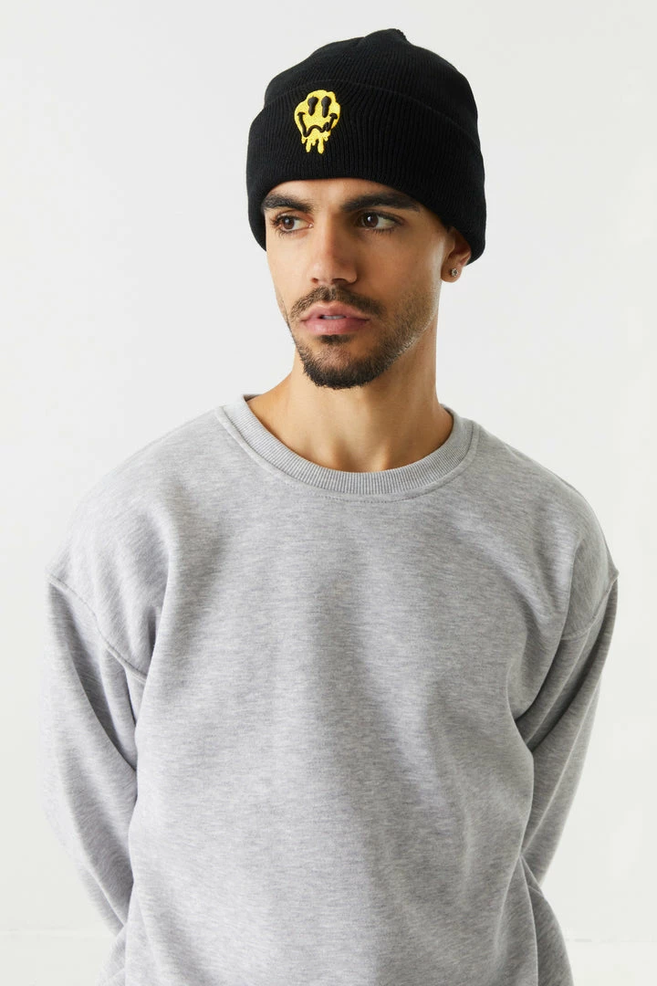 Keep your drip on point! This beanie features rolled hem and embroidered melting smiley face graphic.