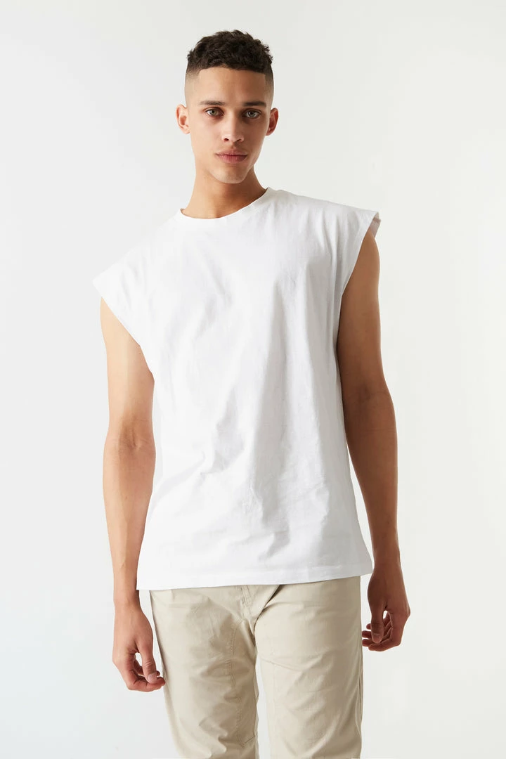 Put your other tanks to the test! This fashion forward fit is a must have for this season. This top features boxy fit, crew neckline and tank sleeves.