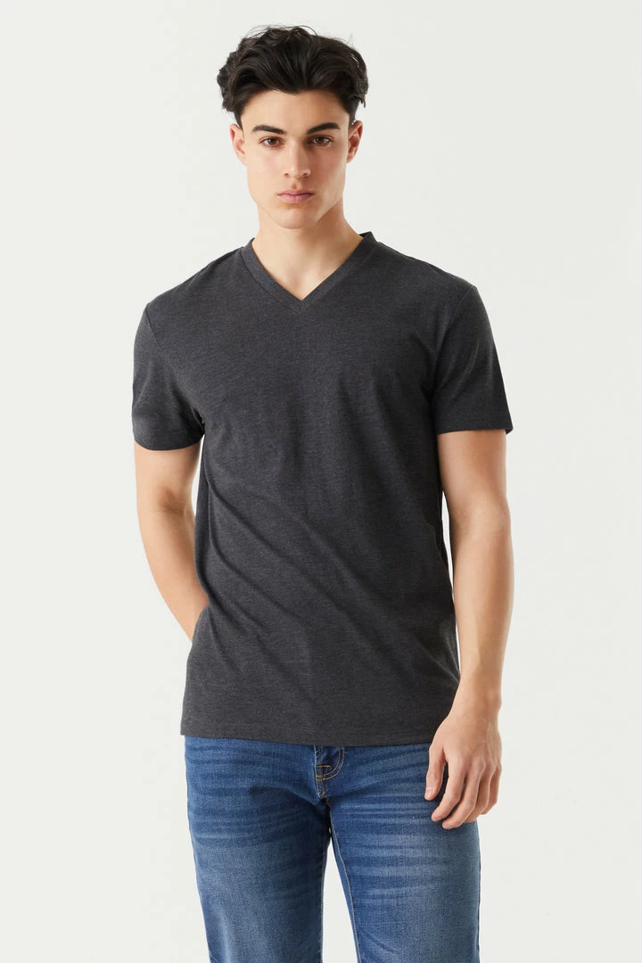 Everyday is another opportunity to put your best shirt forward. This t-shirt features v-neckline, heather knit and short sleeves.