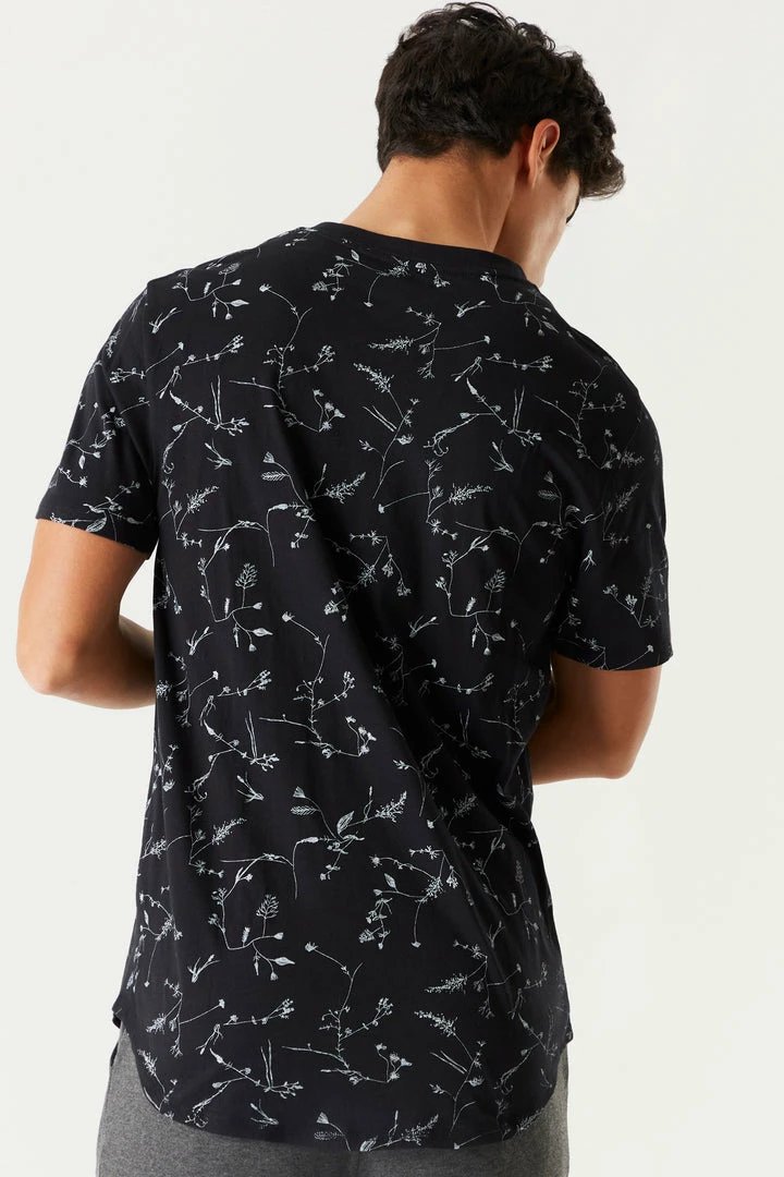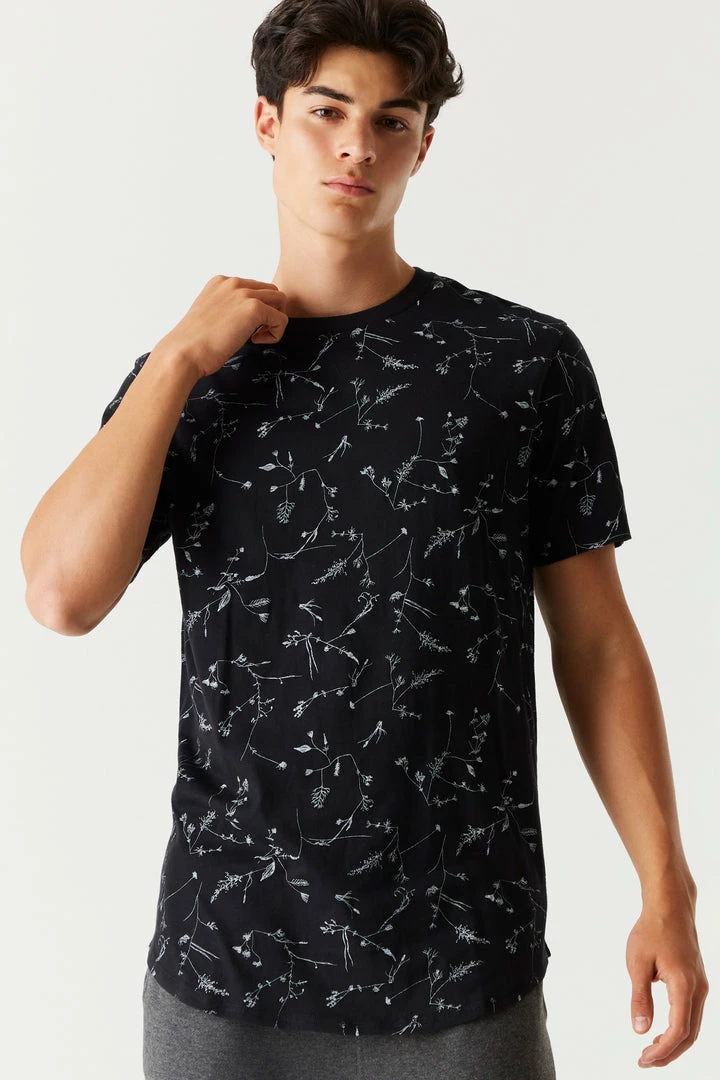 Tiny flowers, big mood. Put a spring on your step and elevate your t-shirt collection with fresh prints. This t-shirt features a crew neckline, all over floral print, short sleeves and longline design.