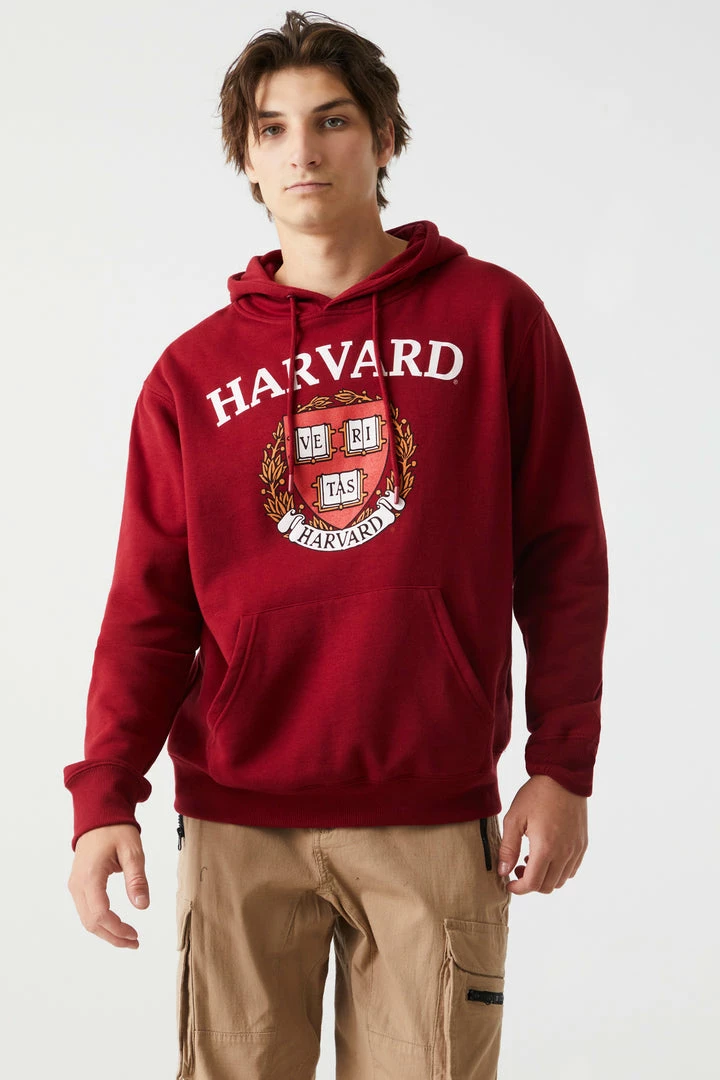 School may be out for the summer, but this Ivy League look is in. This hoodie features drawstring hood, ribbed knit cuffs and hem, long sleeves, kangaroo front pocket and Harvard graphic.