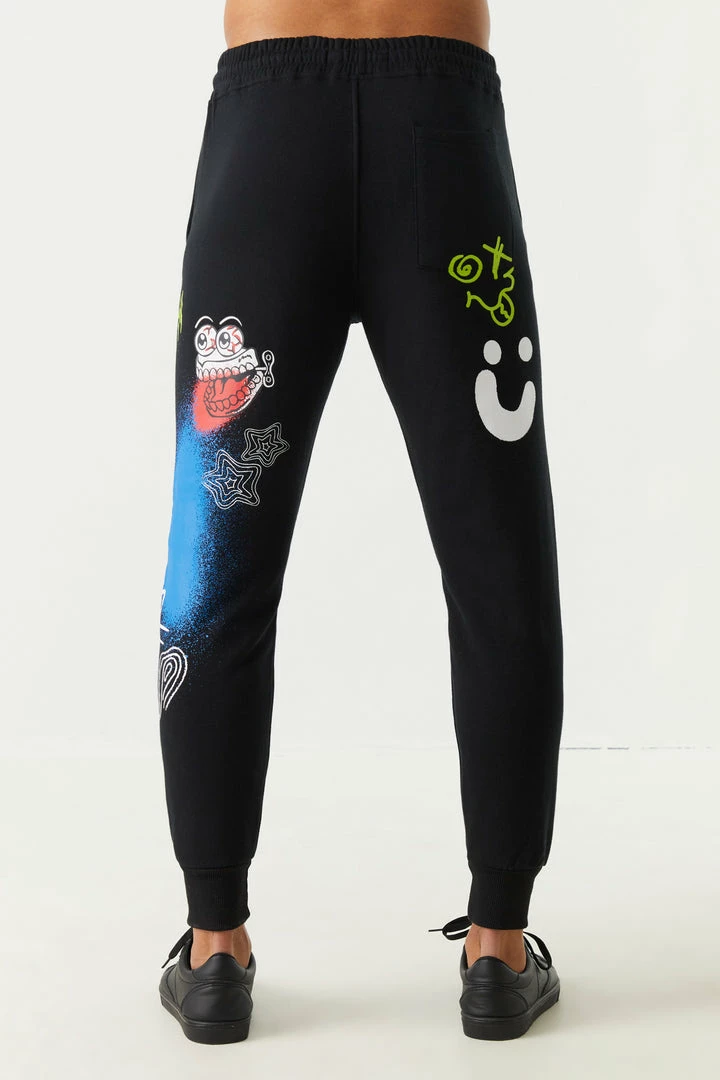 Don’t let your eyes deceive you! Seeing is believing and this hoodie helps you see it all. This jogger features self-tie drawstring waist, illusion graffiti graphics, ribbed knit cuff ankles and two pockets.