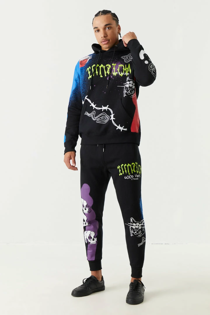 Don’t let your eyes deceive you! Seeing is believing and this hoodie helps you see it all. This hoodie features drawstring hood, kangaroo front pocket, ribbed knit cuffs and hem, and illusion graffiti print.