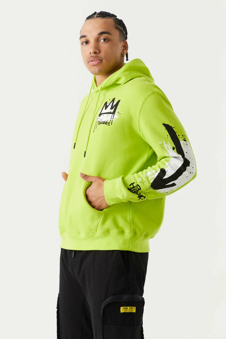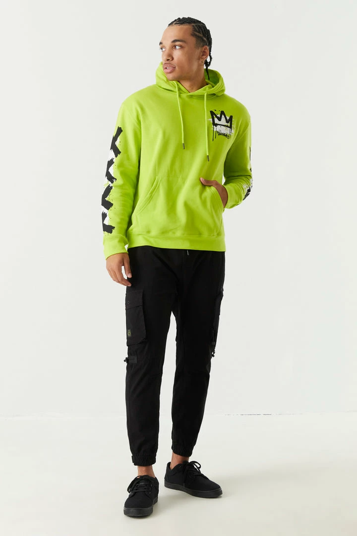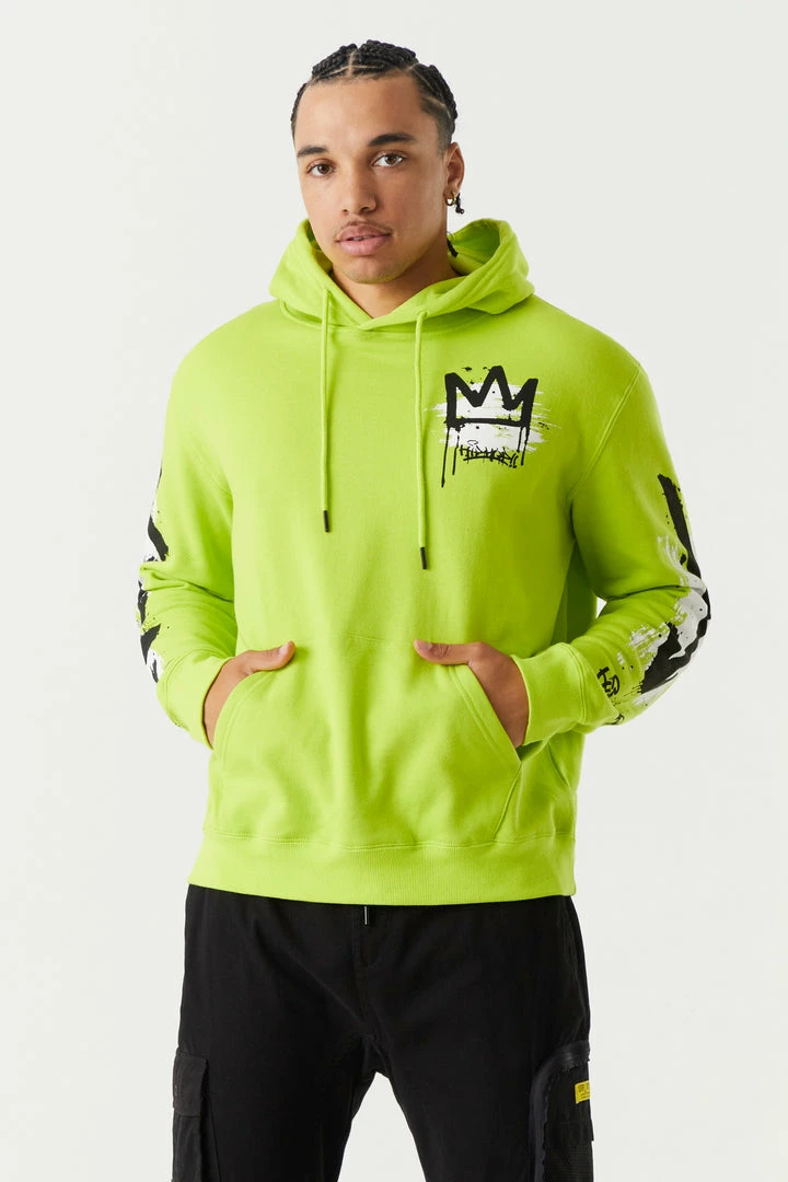Claim your thrown in this loungewear that’s fit for a king. This hoodie features king bear front, back and arm graphics, drawstring hood, long sleeves, kangaroo front pocket and ribbed knit cuffs and hem.