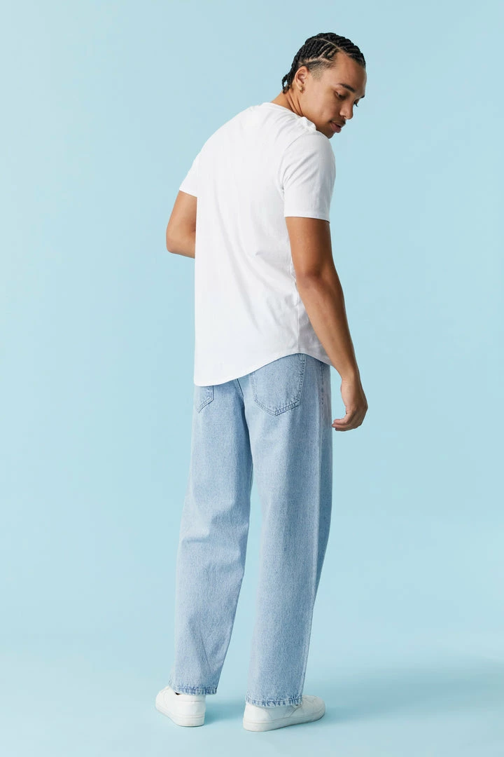 You could search wide and far and never find jeans this bold. This jean features zip-fly button-up closure, belt loops, five pockets and wide leg fit.