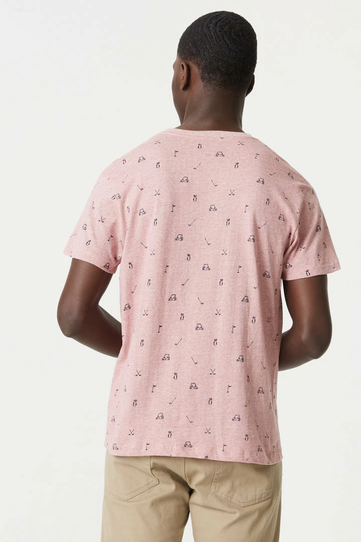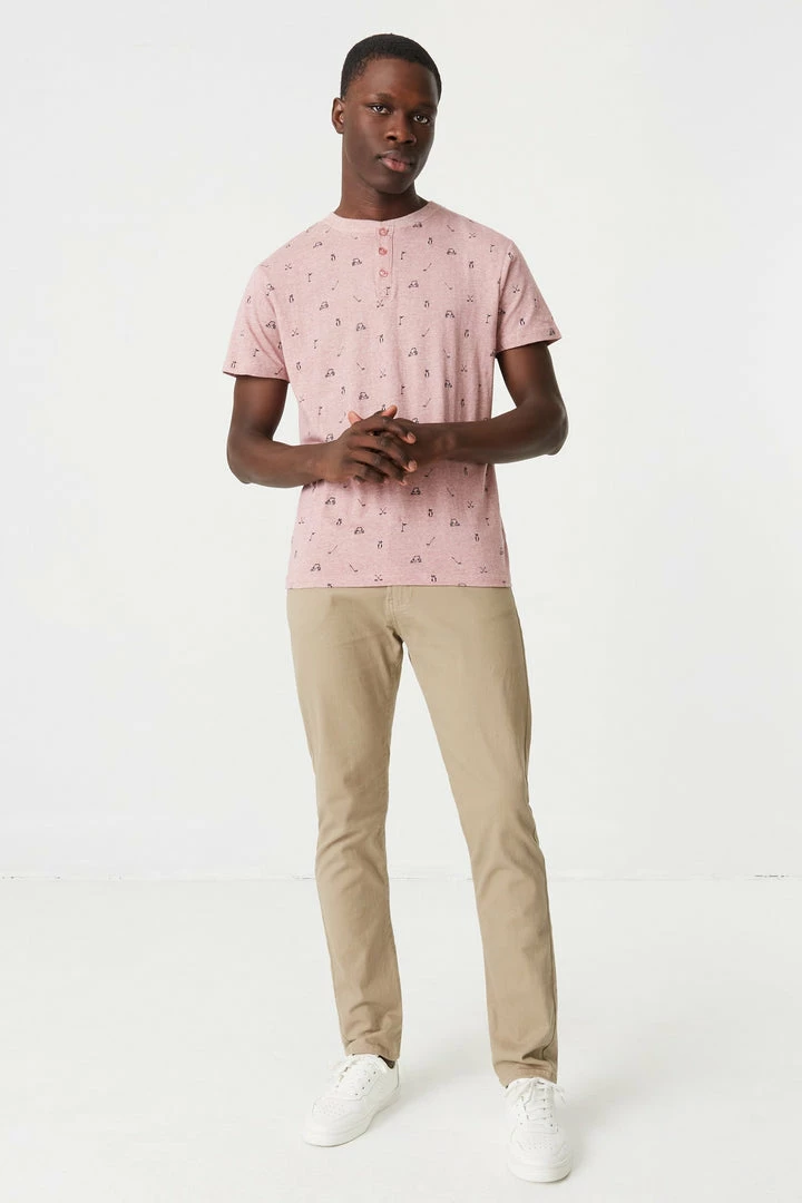 The design is in the details. So, get out your magnifying glass; you don’t want to miss out on these trendy micro prints. This t-shirt features button-up crew neckline, all over print and short sleeves.