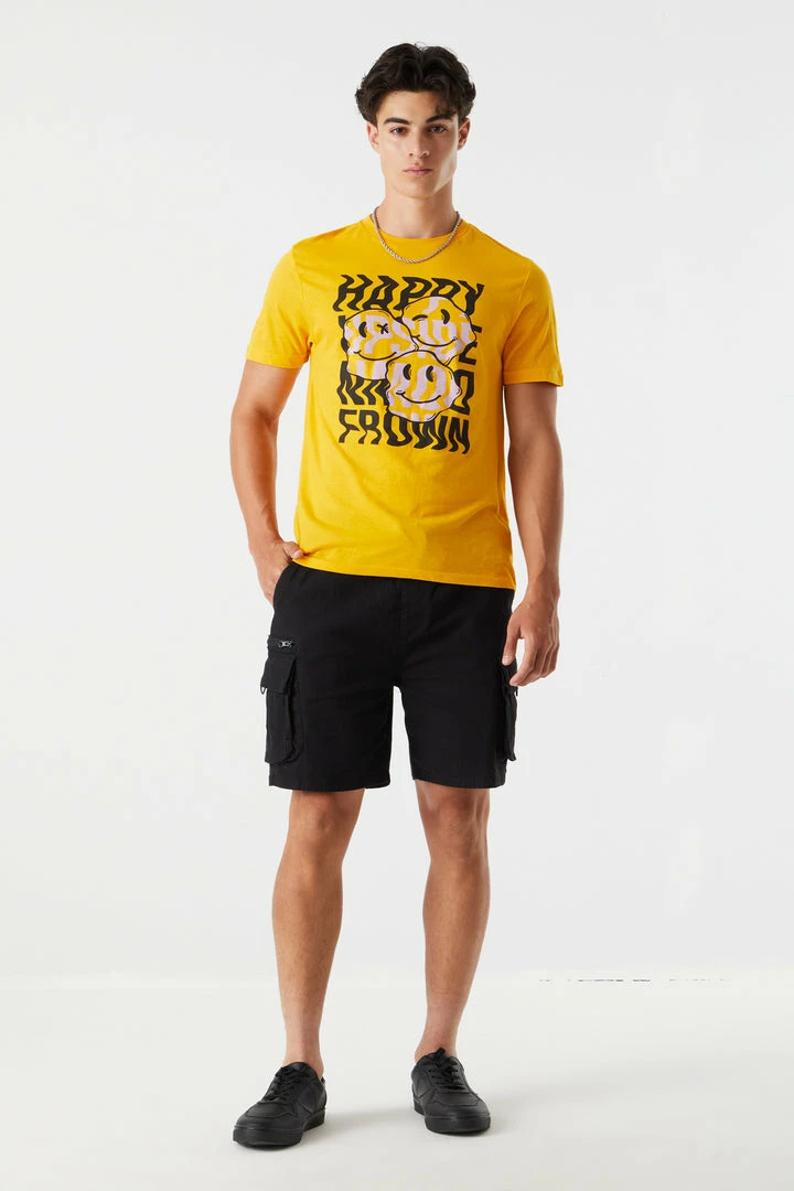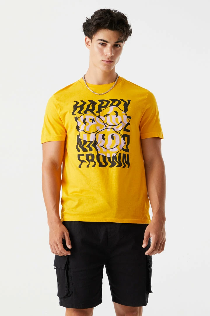 Turn that frown upside down! Let your emotions go with the flow in this silly tee. This t-shirt features crew neckline, short sleeves and Moody Smiles graphic.