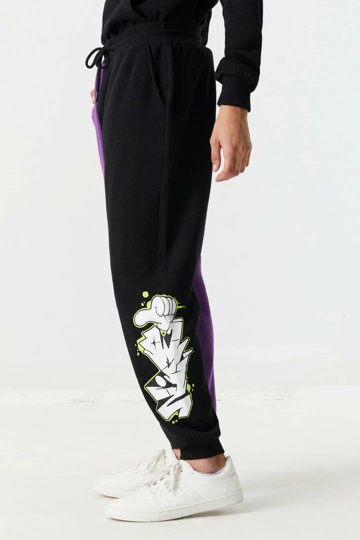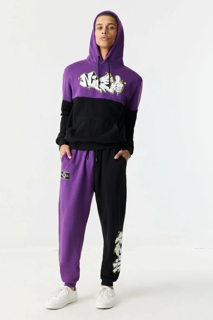 Get ready to pop in this street art inspired pant. This jogger features split print, nice graffiti leg graphic, two pockets, cinched ankles and self-tie drawstring waist. Complete the set with the Nice Graffiti Graphic Split Print Hoodie.