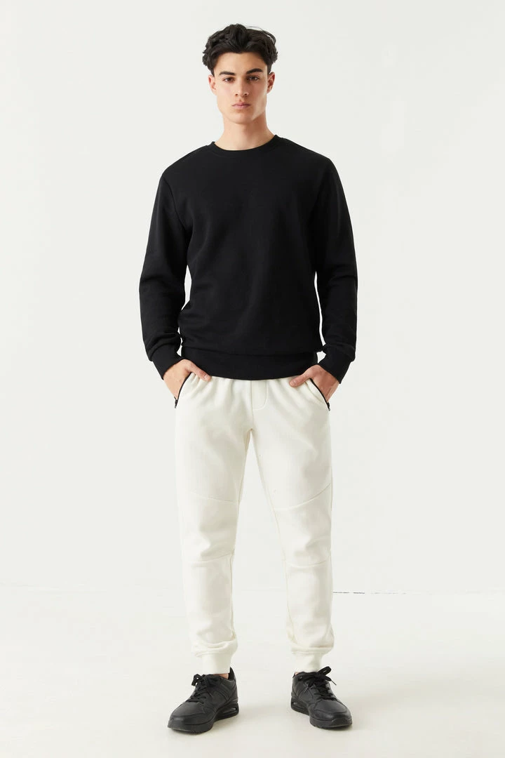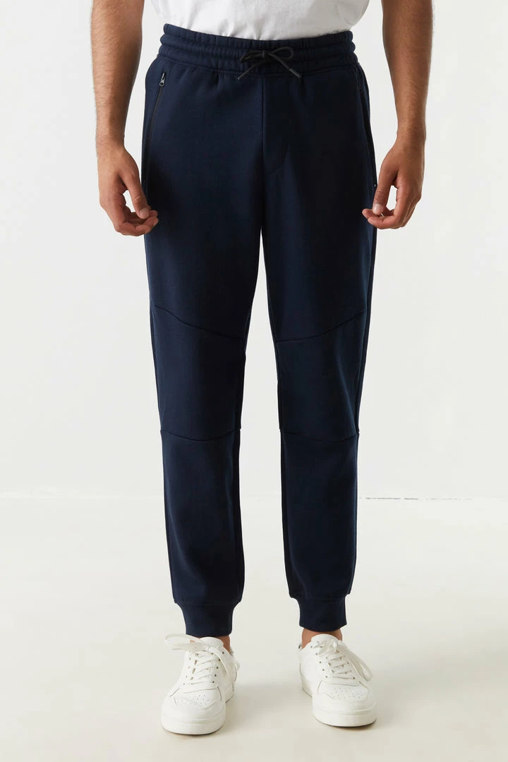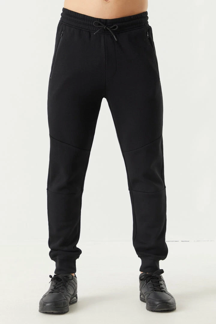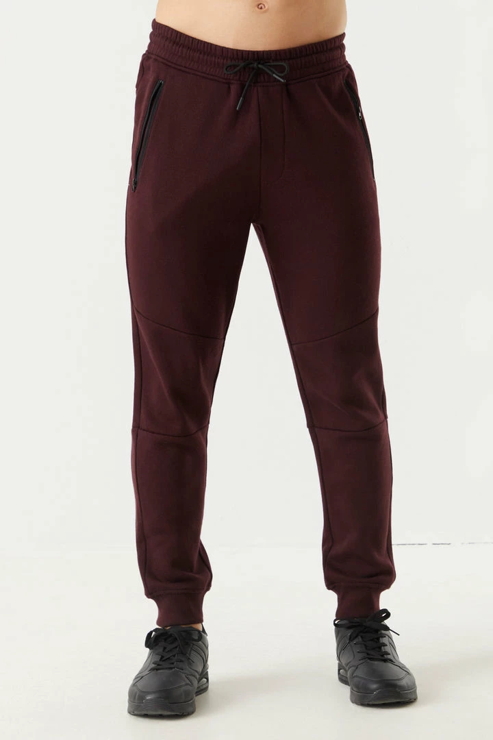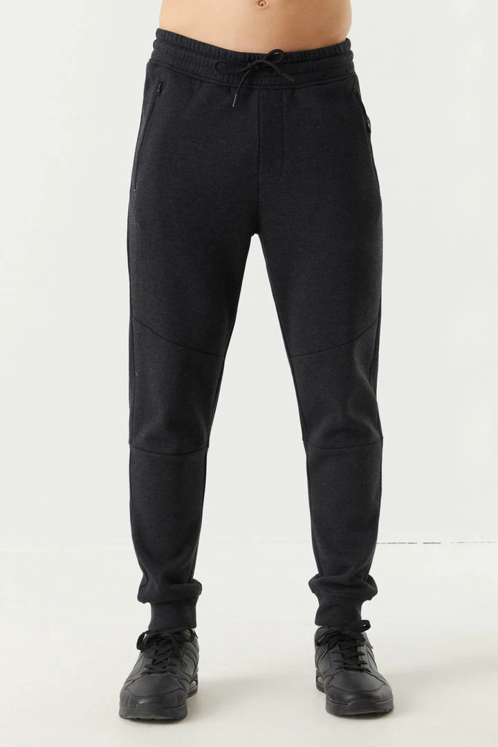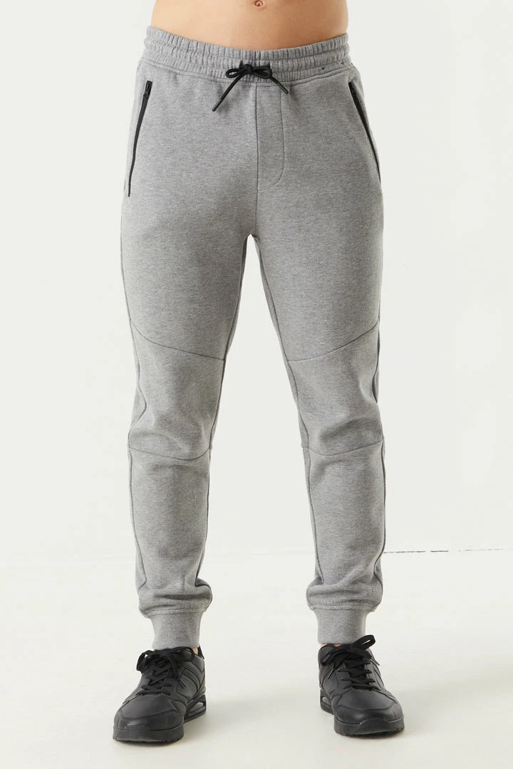 Never worry about loosing your wallet or keys again! Zip it all in with these essential item saving pockets. This jogger features ribbed knit ankle cuffs, self-tie drawstring waist, two zip-up pockets,