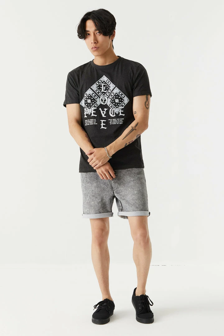 Spread around some good vibes with this love and peace tee. This t-shirt features crew neckline, short sleeves and love and peace front graphic.