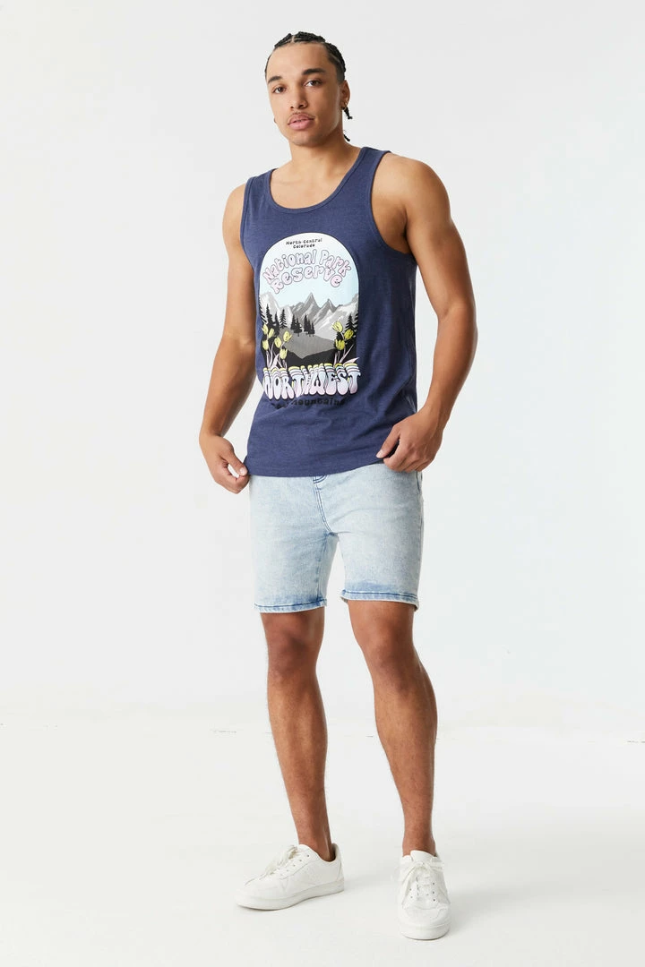 Hike up your boots and breath in some fresh air cause this tank is just waiting to explore the great outdoors! This top features scoop neckline, tank sleeves and National Park Reserve front graphic.