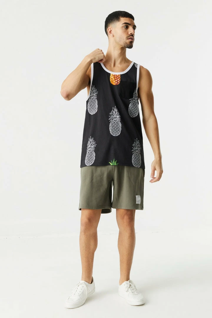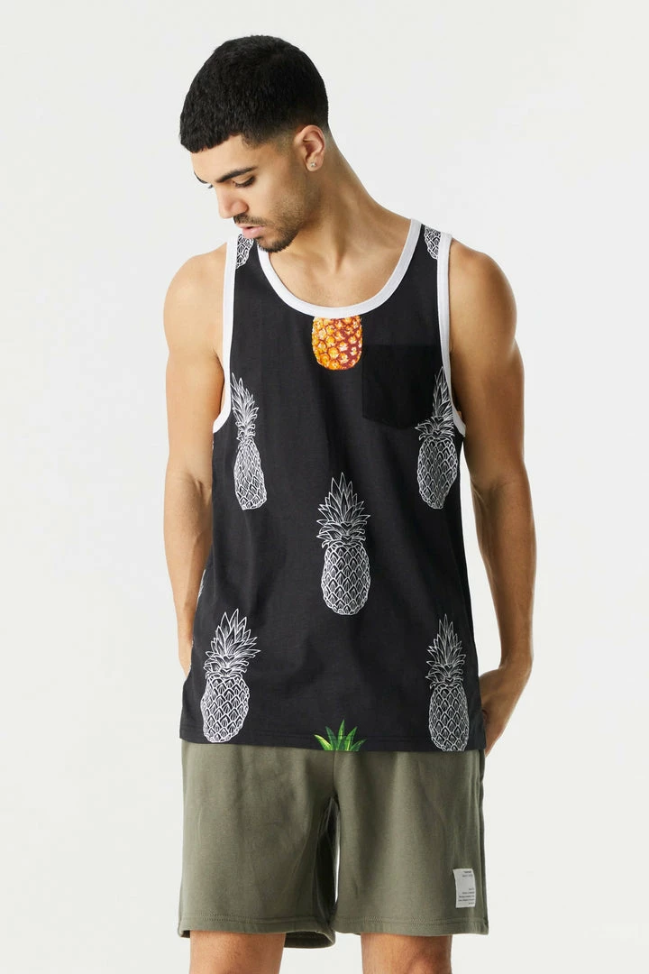 No man is an island! So, get out in the world and show off your social side with this fun time tank. This tank top features scoop neckline, island print, tank sleeves and contrast pocket.