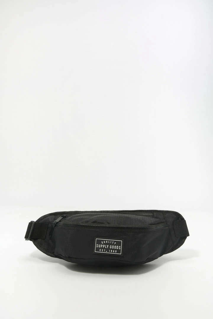 A trendy must-have accessory with a retro feel. Stay stylish while carrying all of your necessities with you sporting this fanny. This fanny pack features adjustable waist strap, two zippered compartments and quality supply goods patch graphic.