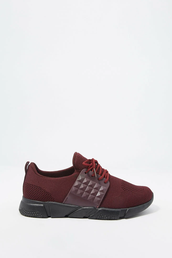 Stop feeling caged in when it comes to your sneaker choices! Free your feet with everyday fierce footwear. This shoe features studded side cage, lace-up front, lightweight knit material and comfort sole.