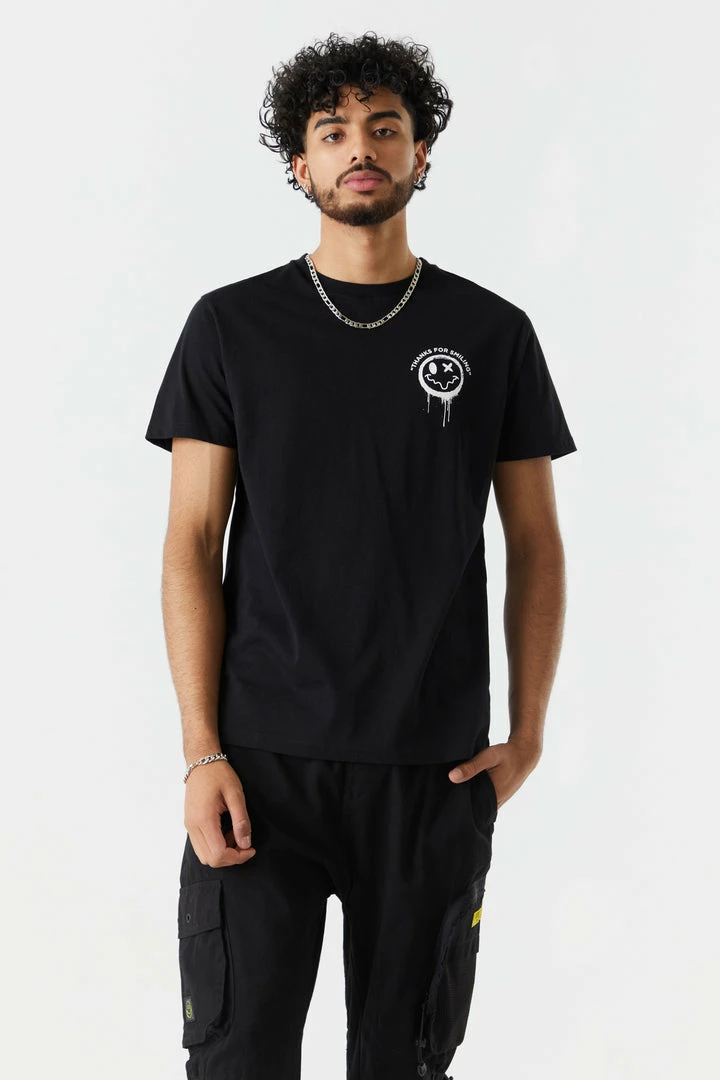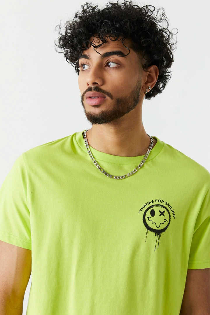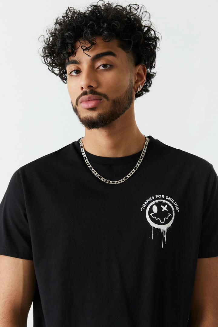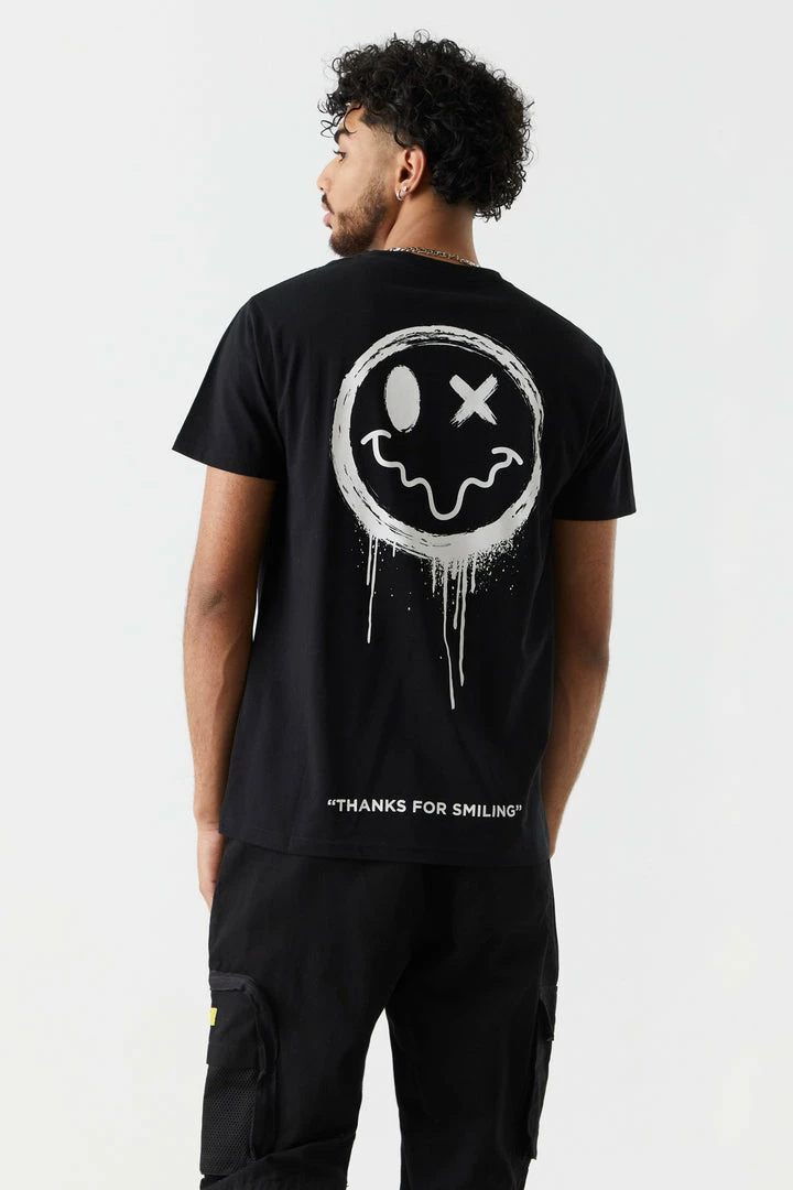 No matter your mood, you can always wear a wonky smile with this tee. This t-shirt features crew neckline, short sleeves and thanks for smiling graphic.