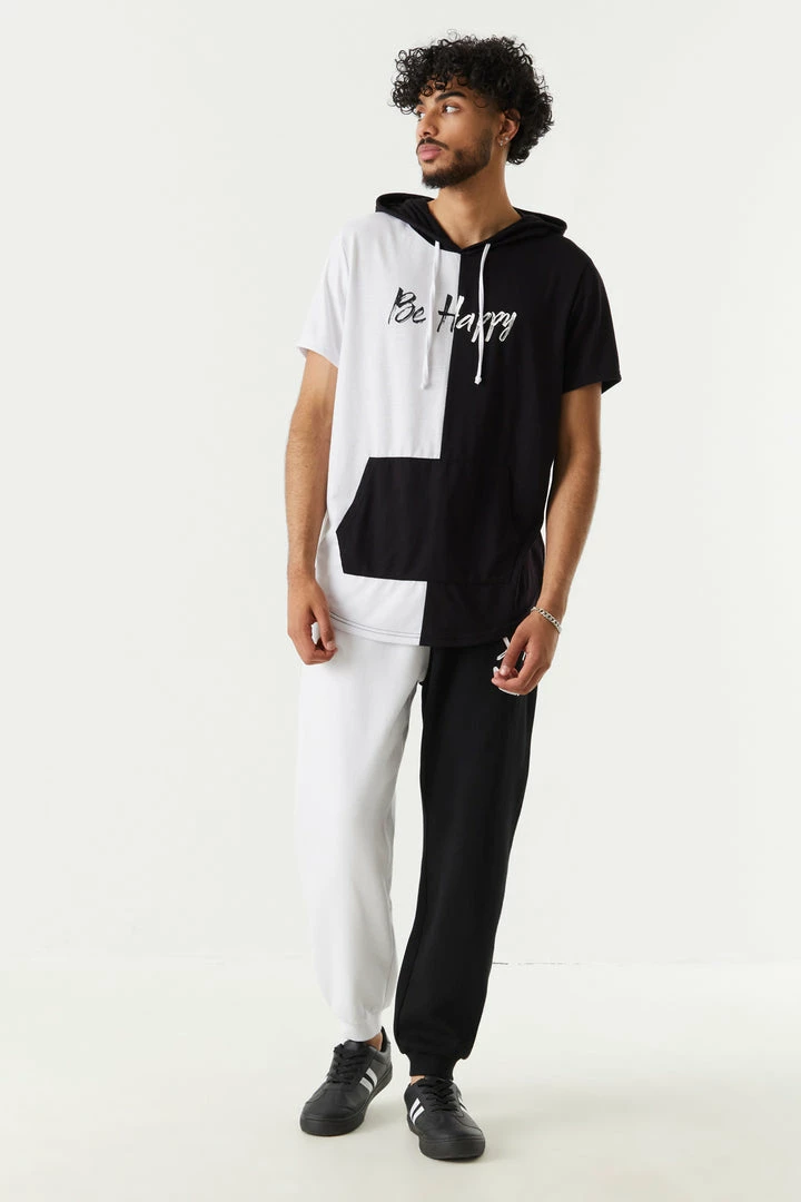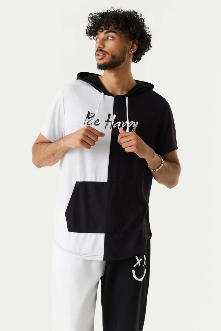 The key to happiness starts within, but wearing trendy hoodies helps! This hoodie features short sleeves, split print, be happy graphic, drawstring hood and kangaroo front pocket. Complete the look with the Be Happy Smiley Graphic Colour Block Joggers.