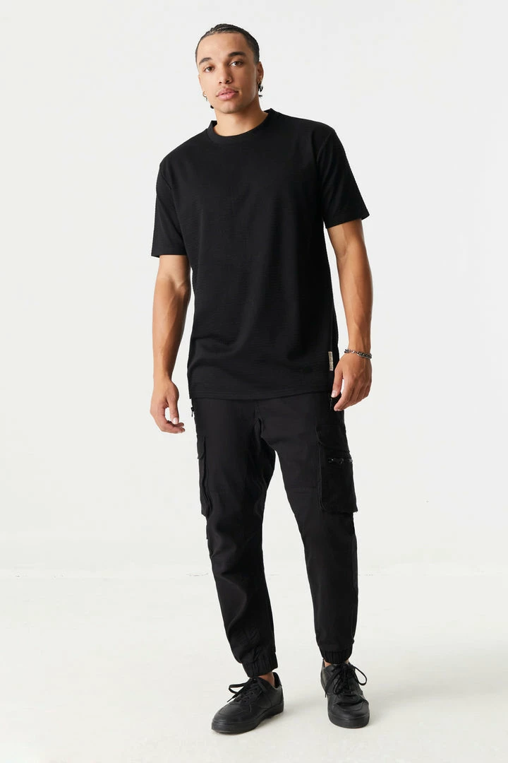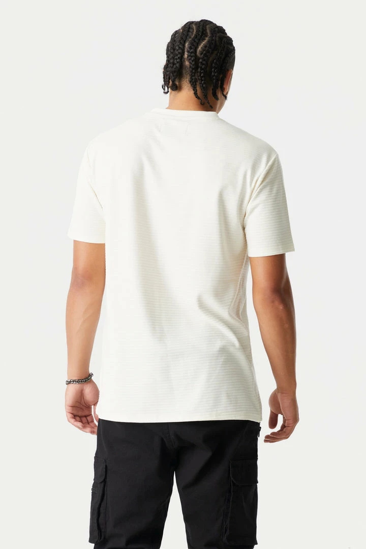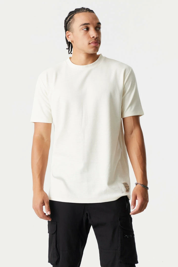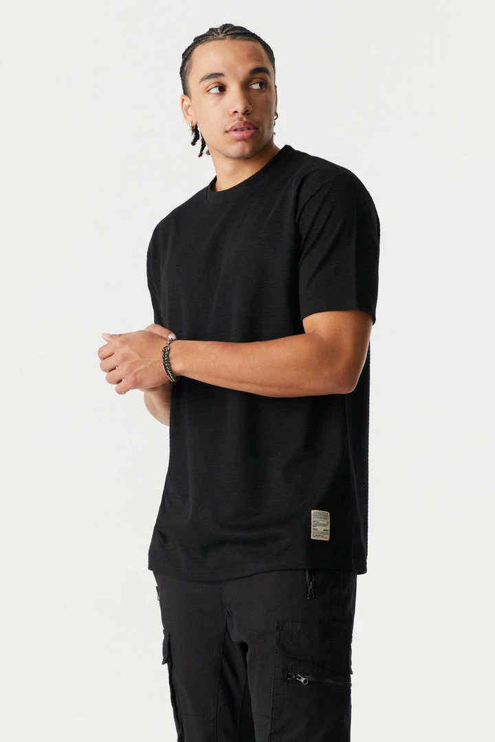 It’s time to toss your old tees and upgrade with this fresh fit. This t-shirt features short sleeves, crew neck and small patch detailing.
