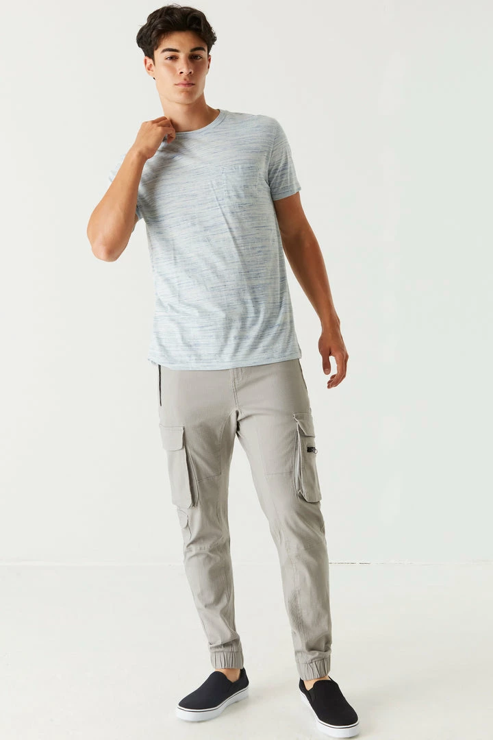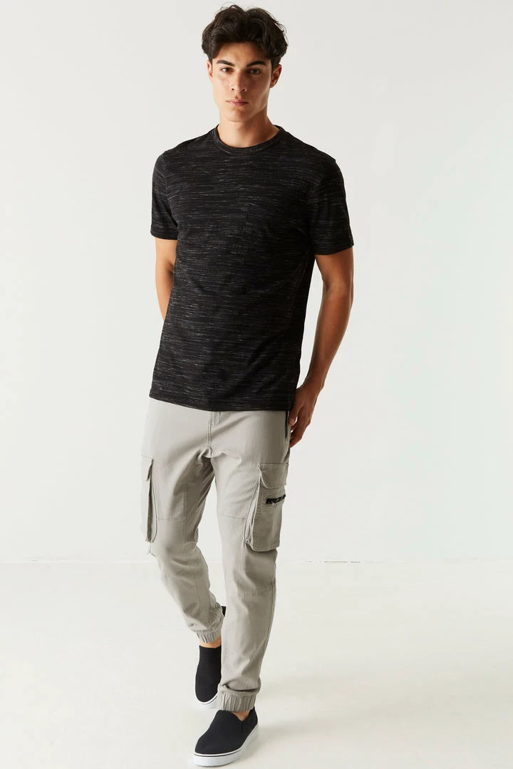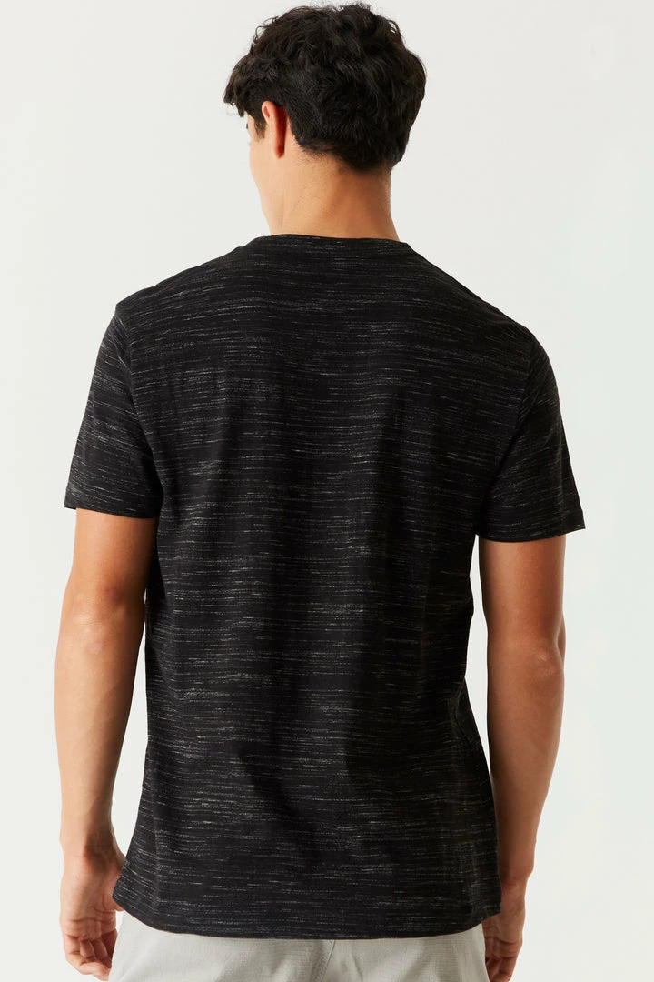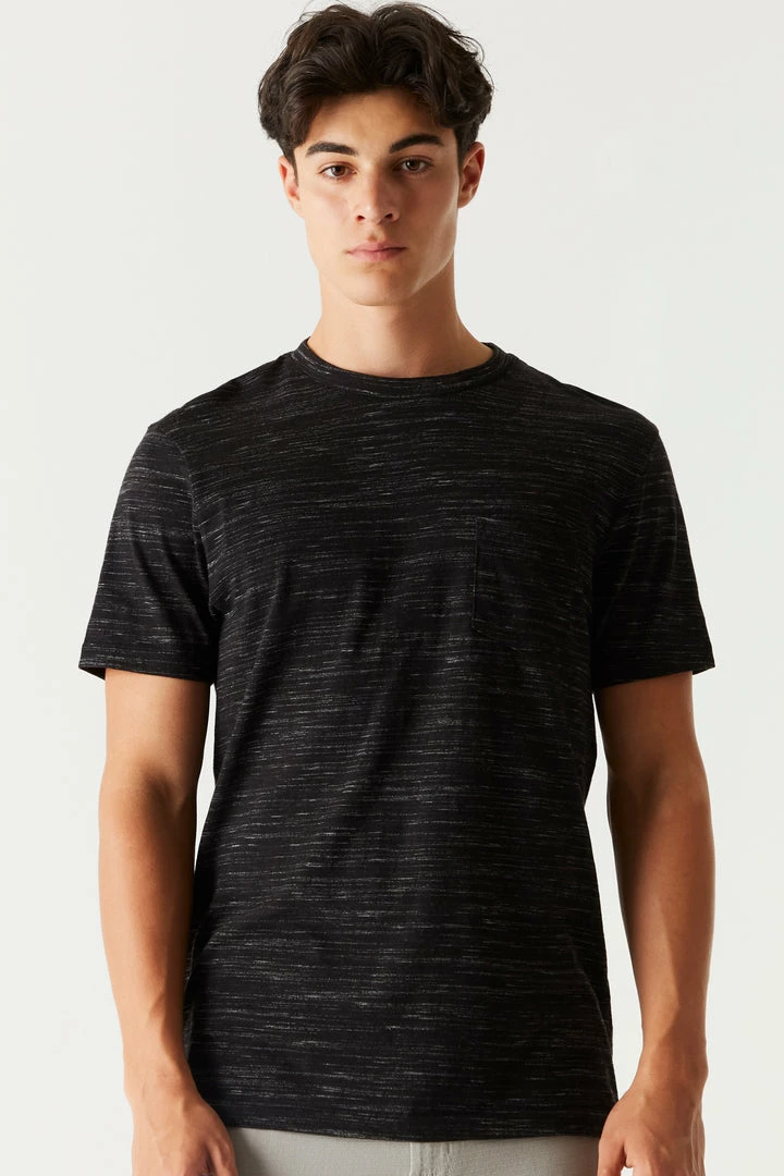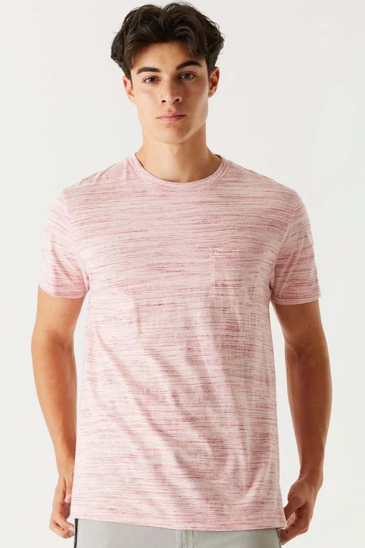 Freshen up your basics with this tee! This t-shirt features a crew neckline, all over Space Dye print and short sleeves.