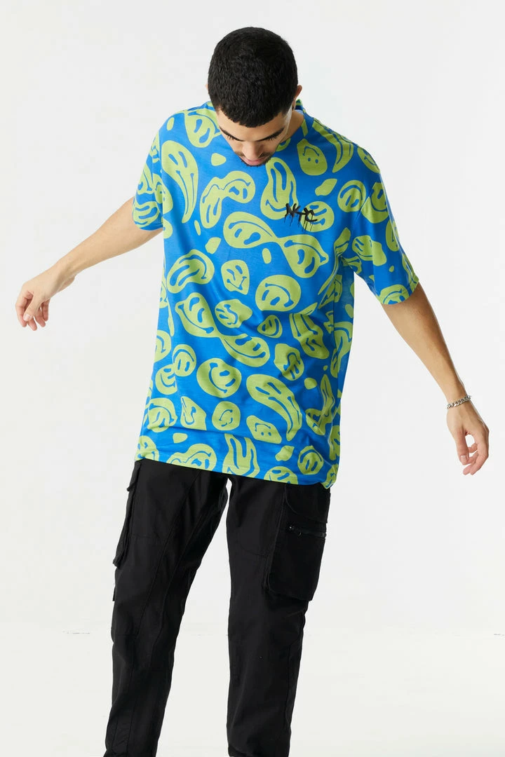 The world is weird place, so dress to fit the brand with this warped smiley tee. This t-shirt features crew neckline, short sleeves and all over warped smiley print.
