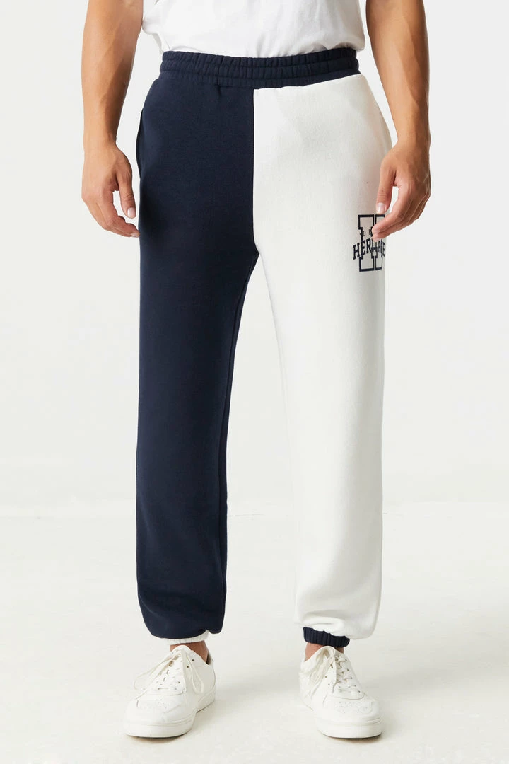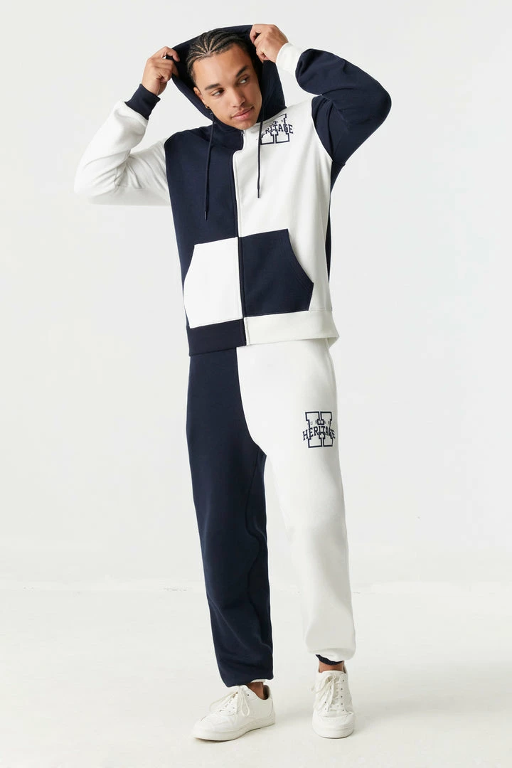 Block out boring bottoms from your pant rotation and turn heads with something alitte bolder! This jogger features urban heritage graphic, cinched ankles, colour block, three pockets and elastic waist. Complete the look with the Urban Heritage Graphic Colour Block Zip-Up Hoodie.