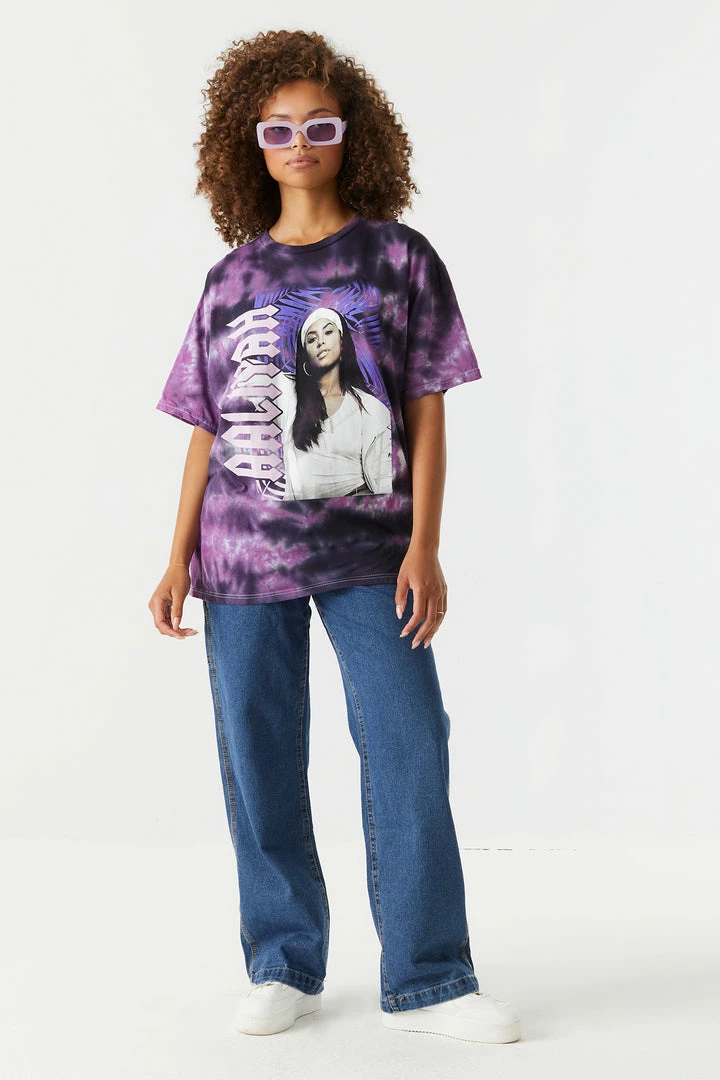 Like a song that’s stuck in your head, this Queens legend lives on in our hearts. This t-shirt features crew neckline, short sleeves, all over purple tie-dye and Aaliyah graphic.