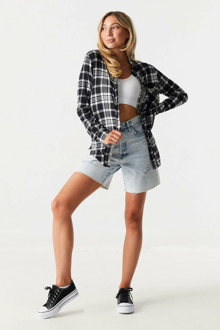 Get that “I stole this from my boyfriend” look, without the drama of a boyfriend! Find true love in layers with this staple shirt. This shirt features long sleeves, button-up front, collared neckline, single chest pocket, single button-up cuff, plaid print and stretchy boyfriend fit. Size runs small.