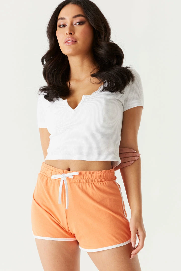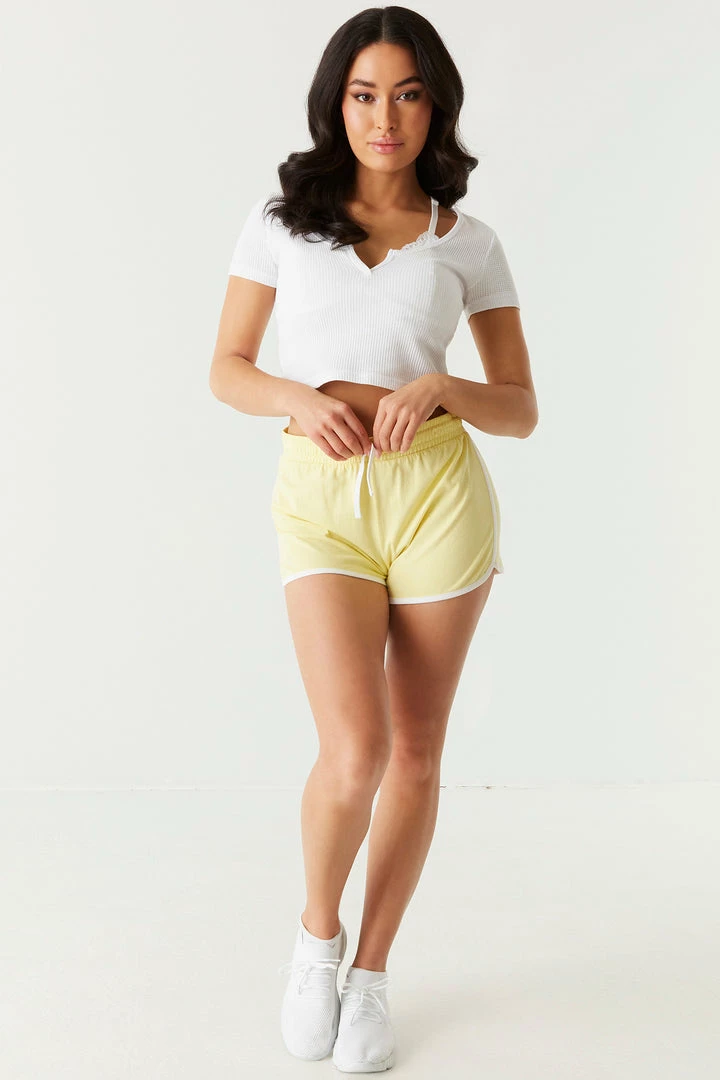 Sup shorty? Your summer must-have has arrived! This short features an elasticized waistband with drawstrings and contrast piping. Size Runs Small.