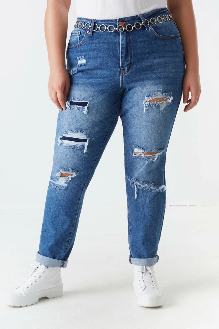 Our love for fierce denim never fades. Conquer everyday with this flattering fit! This jean features zip-fly front closure, all over distressing, medium wash denim, rolled cuffs, belt loops and five pockets.
