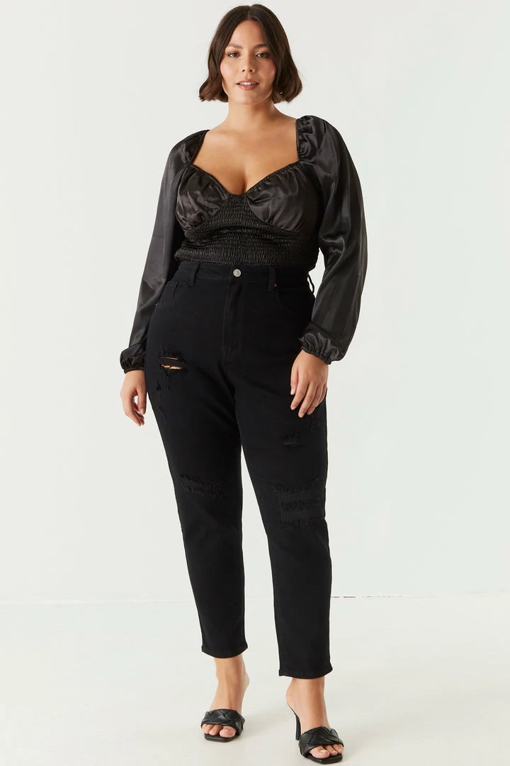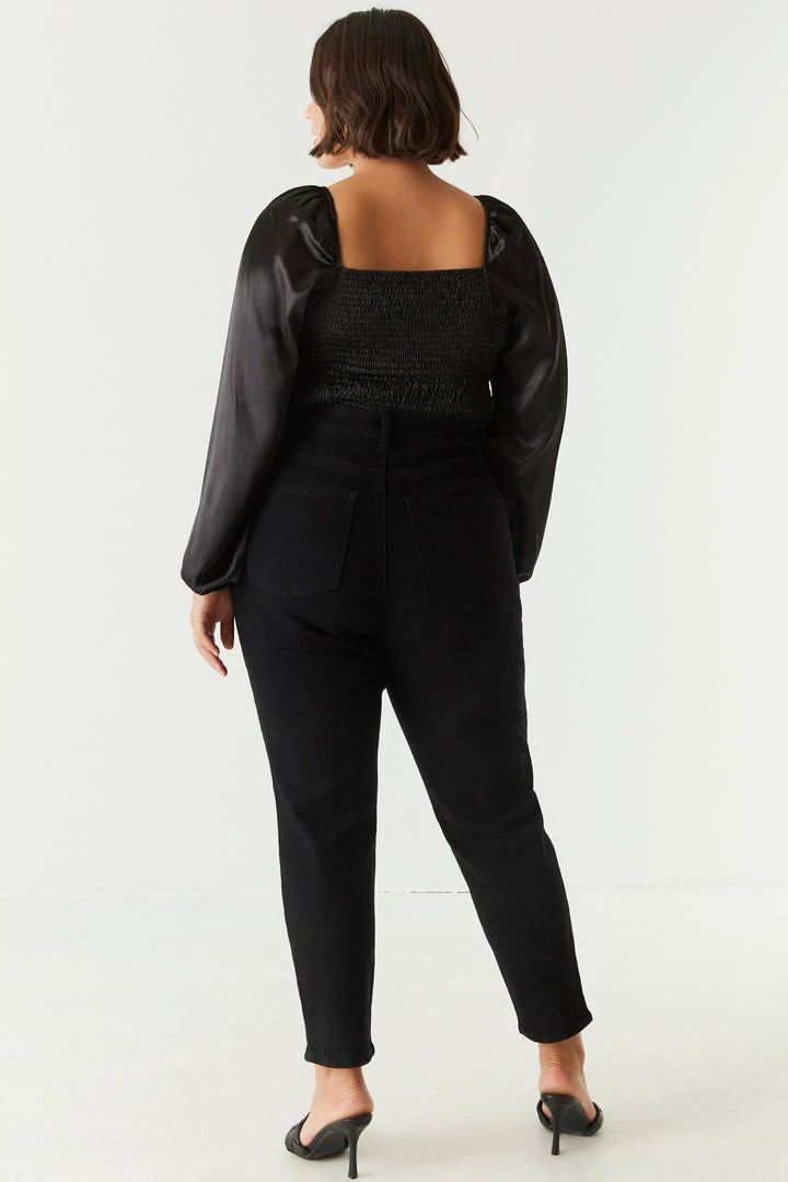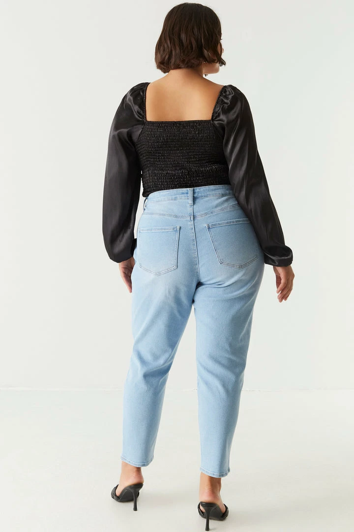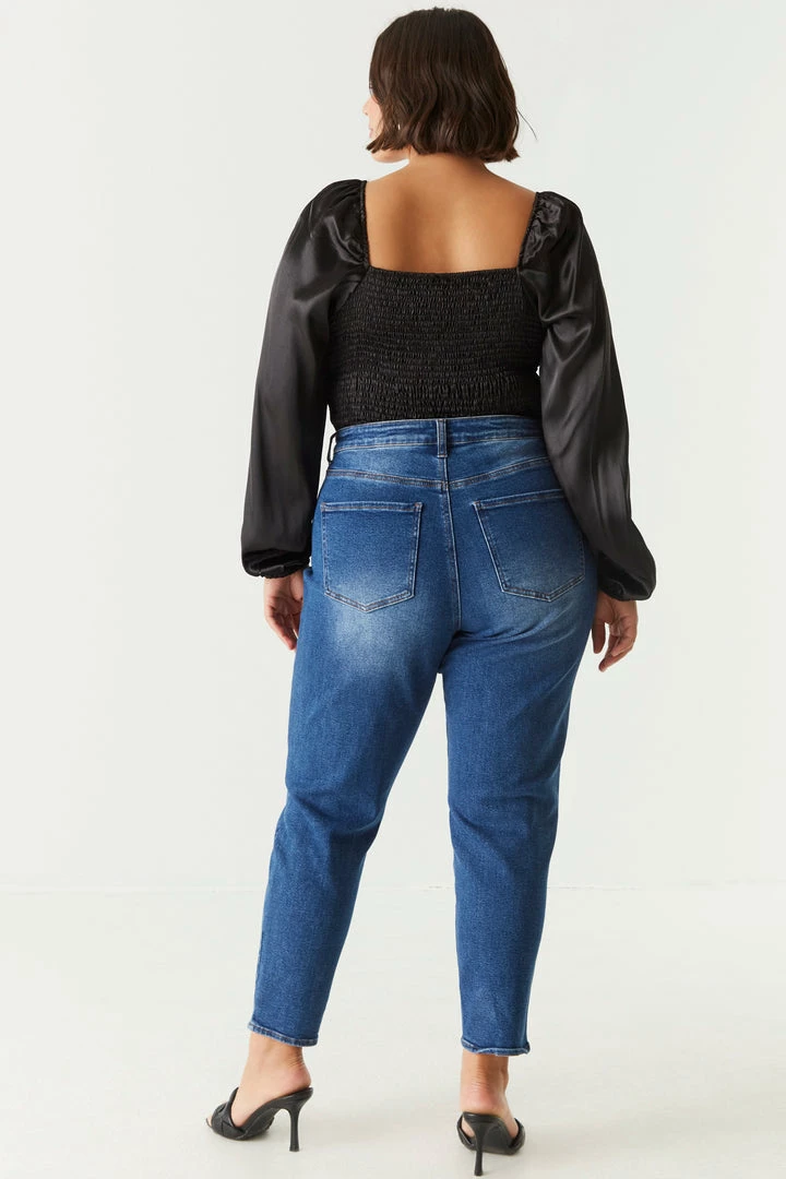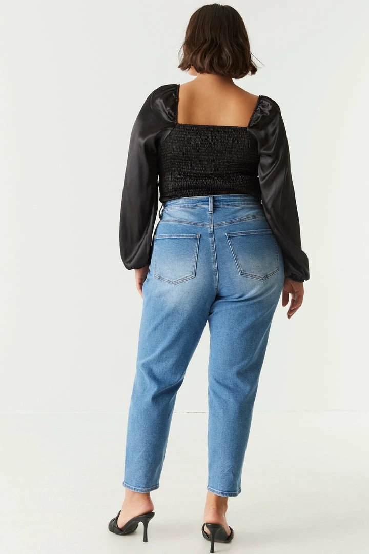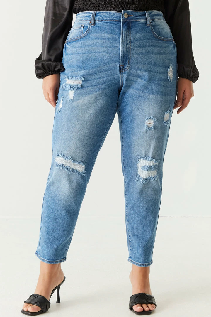 Retro reinvented. Get the cool girl look with the Mom fit—features an ultra-high-rise waist, cropped ankle length and relaxed fit.This jean features a high-rise waist, zip fly closure, belt loops, five pockets, distressed details and a mom fit.