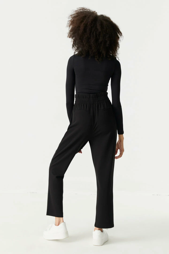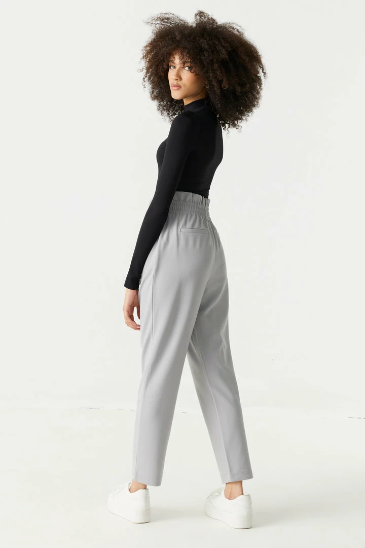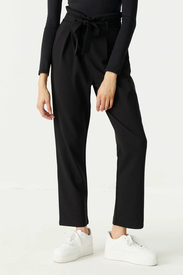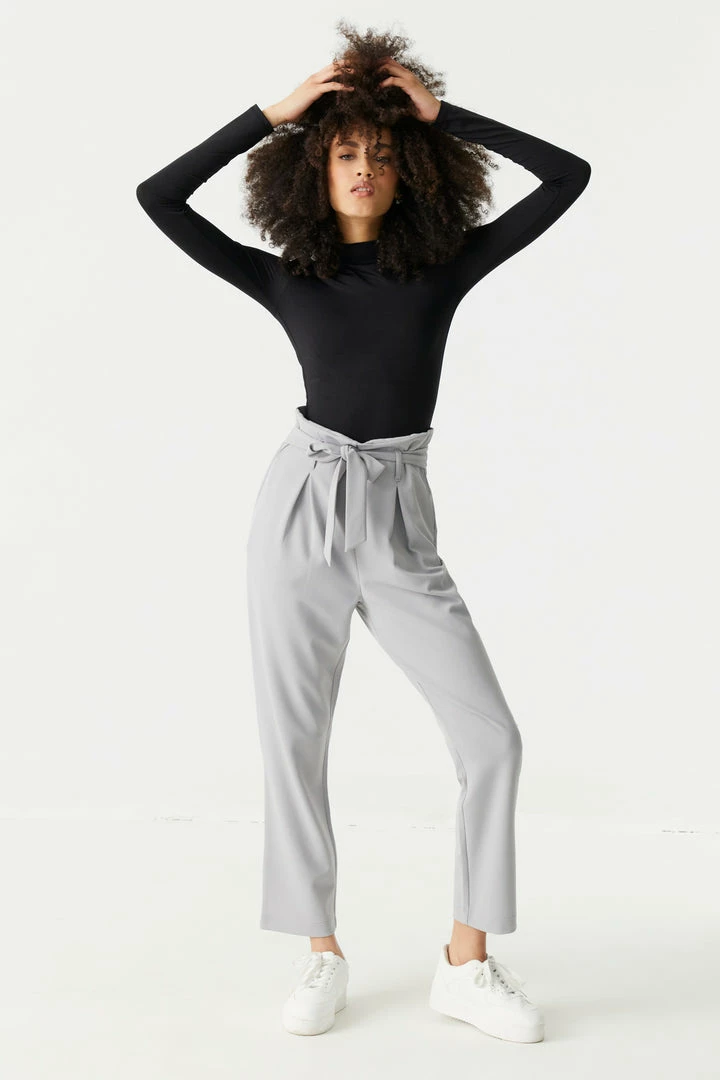 Mom’s know best! So steal her style with these paperbag pants. This pant features self-tie belted waist, two pockets, crepe knit and paperbag mom fit. Size runs small.