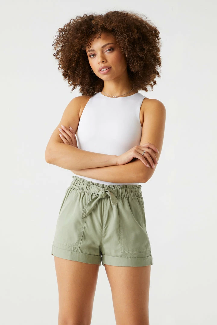These shorts are fab-bow-lous! Stretch out your stems in snazzy summer wear. This short features self-tie belt waist, pleated front, rolled hem and two pockets. Size Runs Small.