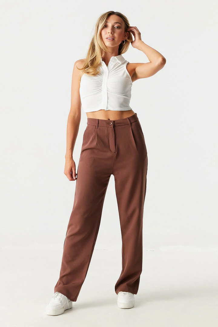 Leave a lasting impression in these luxury pants that serve looks and comfort. This pant features high-rise waist, two pockets, zip-fly button-up closure, straight let, belt loops and micro fibre material. Size runs small.