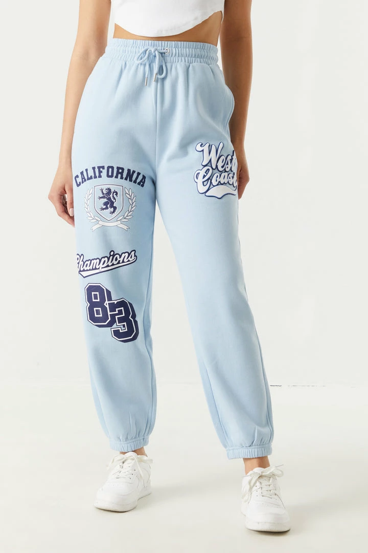 Congrats on finding your new best friend! This jogger is guaranteed to flatter from power-lifts to parties. This jogger features self-tie drawstring, high-rise waist, two pockets, cinched ankles and West Coast leg graphic. Set me up with the West Coast Graphic Cropped Fleece Varsity Jacket. Size runs small.