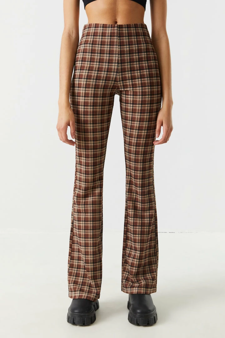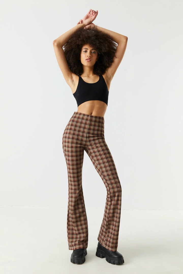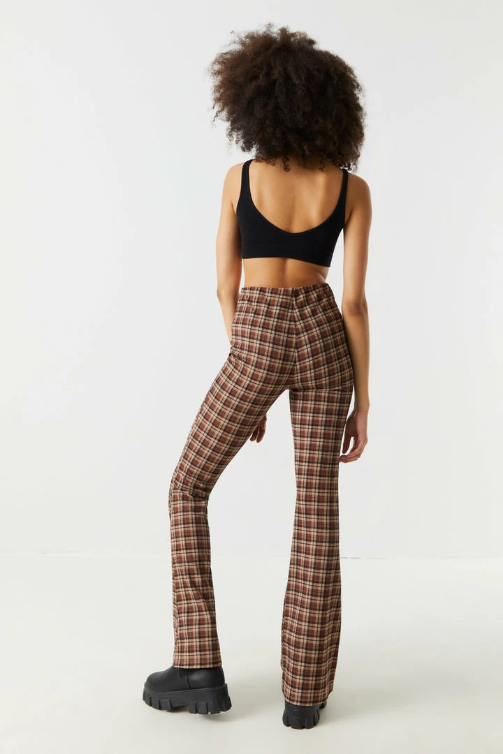 Give your stems some attention with these bold bottoms! This pant features flare bottom, all over print, crepe knit material and high-rise waist. Size runs small.