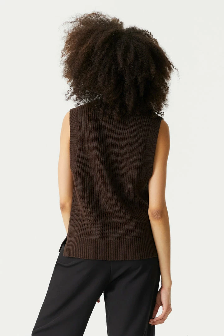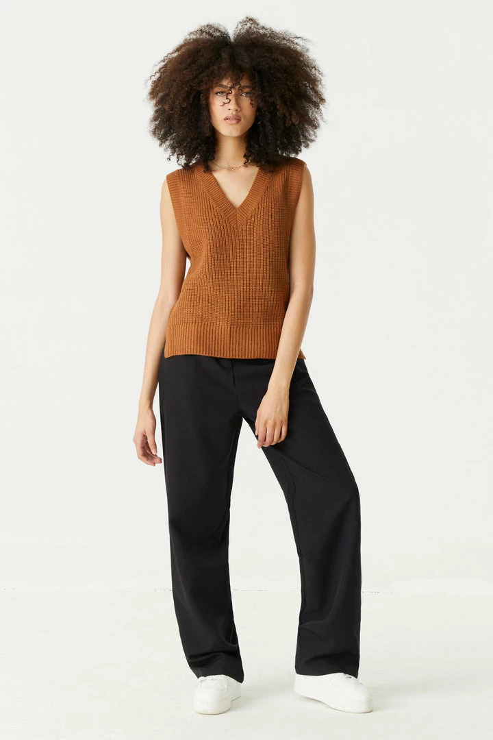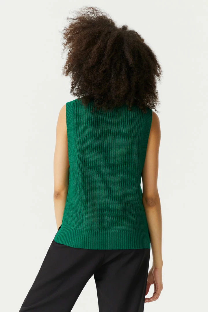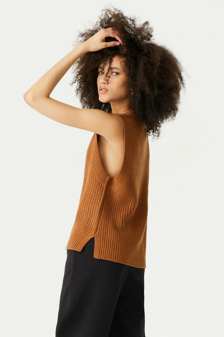 In-vest in yourself and see how the future unfolds before you. This vest features chunky knit, v-neck, mini slit sides and tank sleeves. Size Runs Small.
