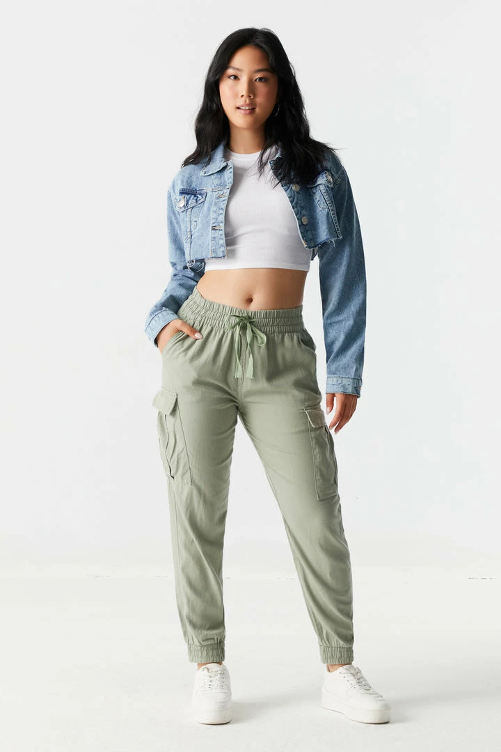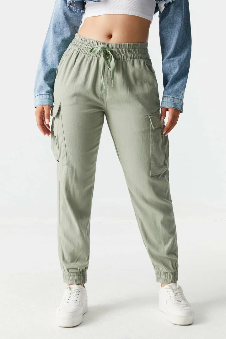 Pant styles come and go, but cargo always seems to be coming! Join the trend with these cool threads. This jogger features two cargo pockets, cinched ankles, drawstring waist and two slide in pockets. Size Runs Small.