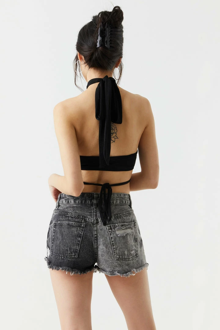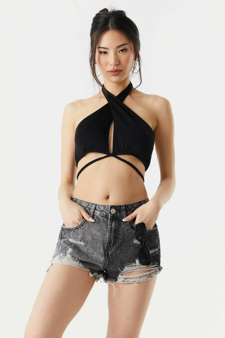 Halter-nate your going out tops! Switch in this fun fit for a show-stopping look. This top features cross front, halter neck, double self-tie back and cropped fit. Size Runs Small.