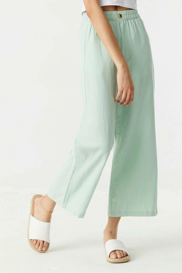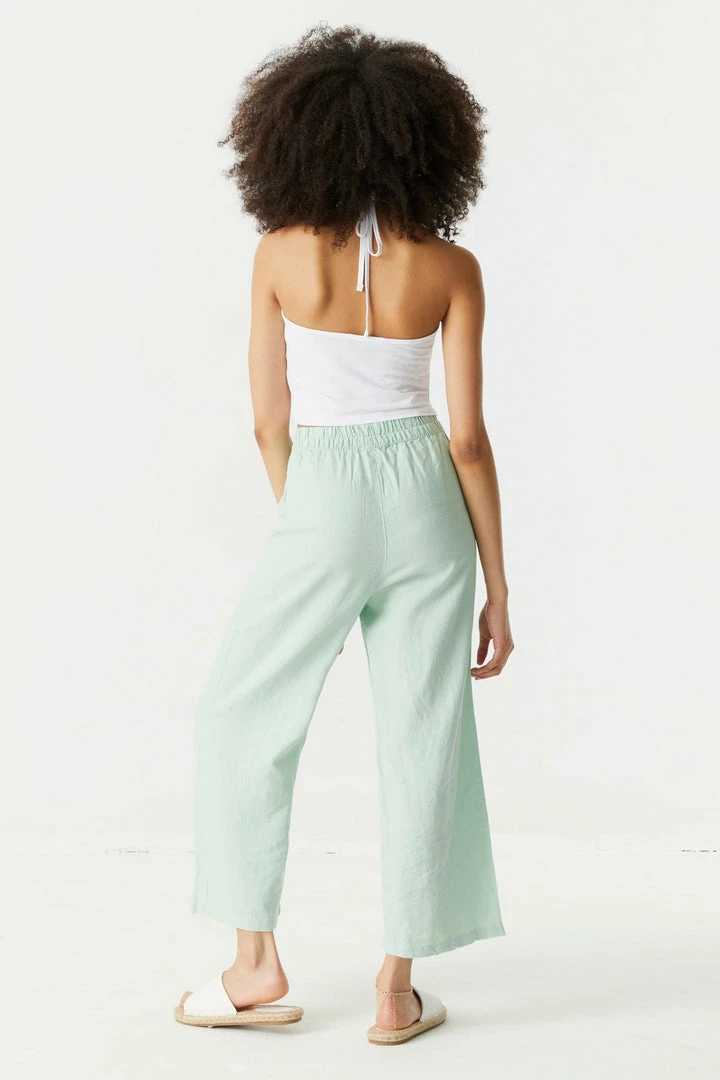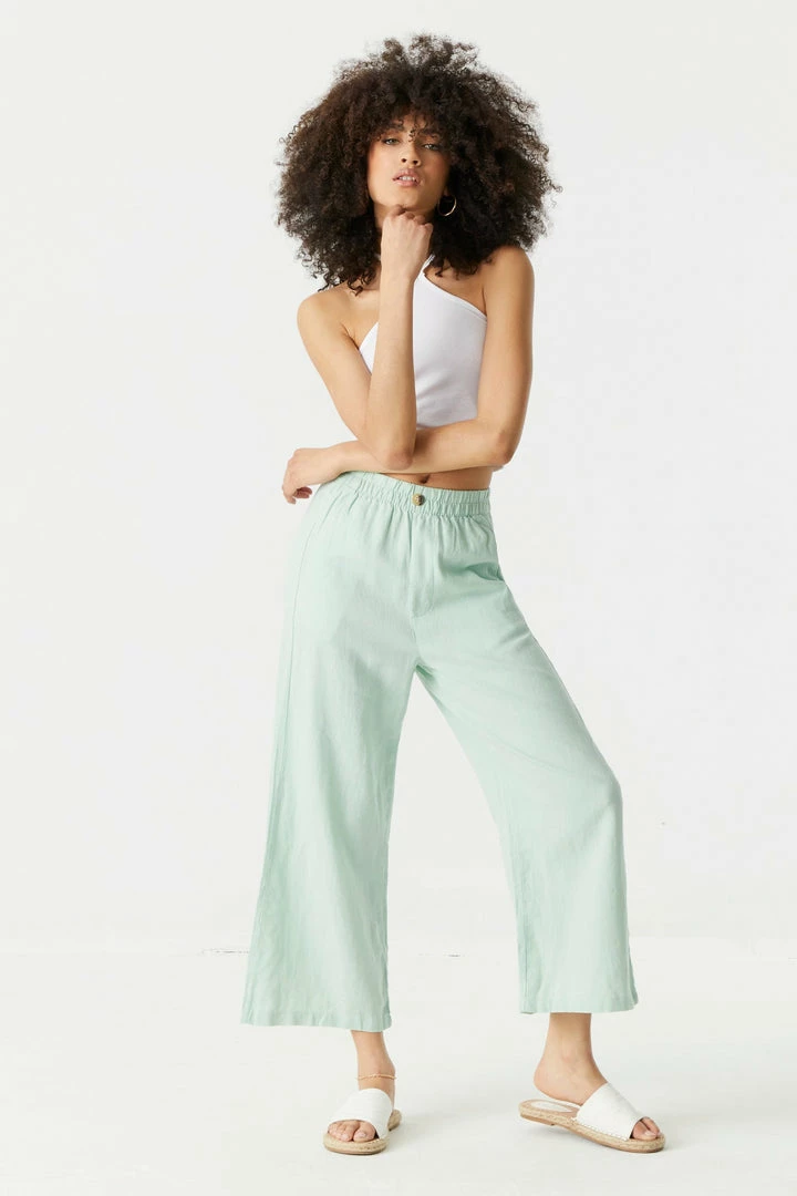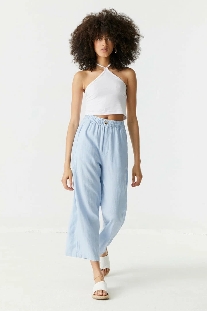 Keep it light and breezy this summer. The ultimate lounge pant of the season has arrived! This pant features culotte design, cropped fit, wide leg and elastic waist. Size Runs Small.