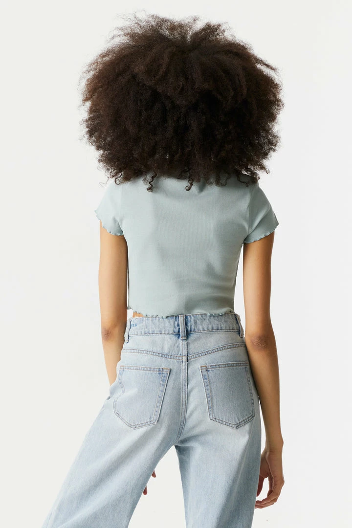 Make sure you get your daily dose of veggies with this lettuce hem tee! An essential part of any balanced outfit. This t-shirt features cropped fit, embroidered front graphic, short sleeves, crew neck and lettuce hem. Size runs small.