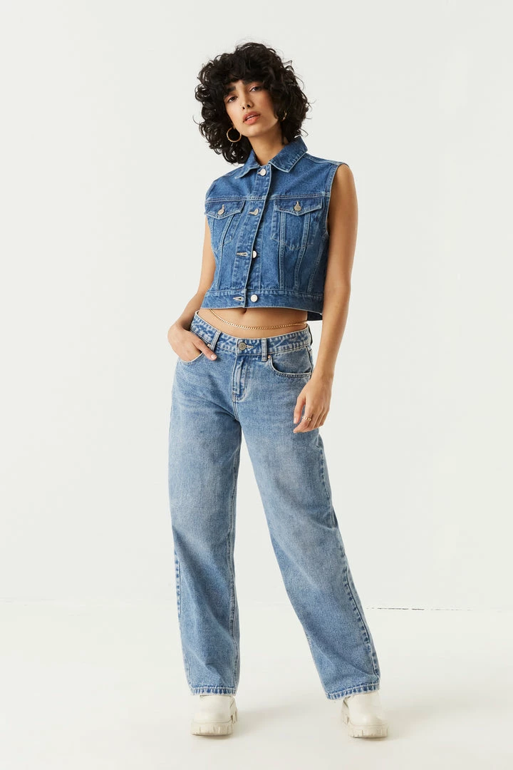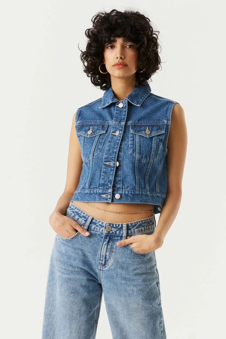 What magical creature delivers cute denim vests of your dreams? A Jean-ie!! Make all your wishes come true with this fun fit. This vest features button-up front, collared neck-line, two button-up pockets and denim material. Size Runs Small.